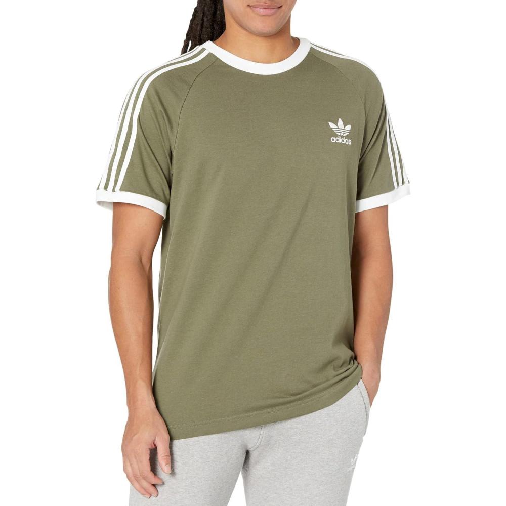 adidas Originals Men’s Originals 3 Stripes Tee, Clear Sky, Medium(Olive Strata)