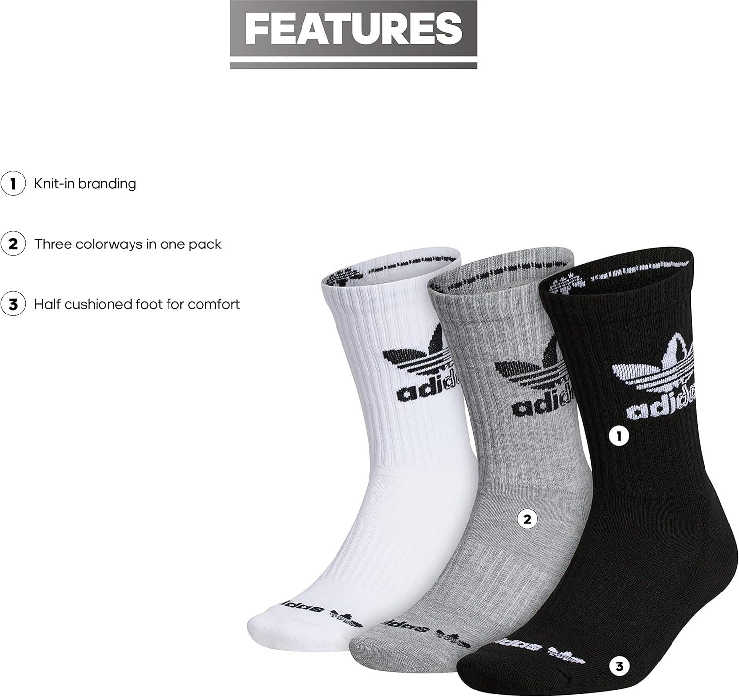 Mix up your look in these crew-length socks. The three pack gives you three different colors to choose from. They all have a half-cushioned footbed for comfort and knit-in Trefoil logos that show your adidas pride.