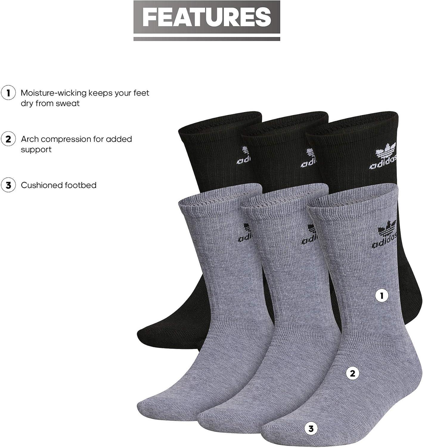 adidas Originals Trefoil (6-Pair) Crew Sock(Heather Grey/Black/White)