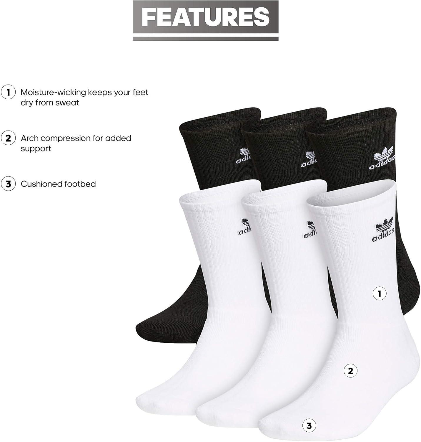 The Trefoil Crew is all about clean, comfortable style. Cushioning in the foot gives you the comfort and durability for everyday wear, arch compression will keep the sock snug and secure on your foot, and moisture-wicking will keep your feet dry from sweat.