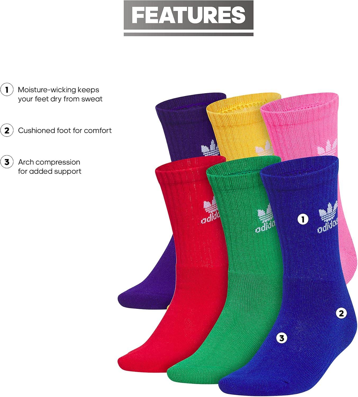adidas Originals Unisex child Athletic Cushioned Crew Socks OG (6 pairs) durable breathable(Lucid Pink/Collegiate Royal Blue/Better Scarlet)