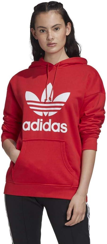 adidas Originals Women’s Adidas Adicolor Trefoil Hoodie(Lush Red/White)