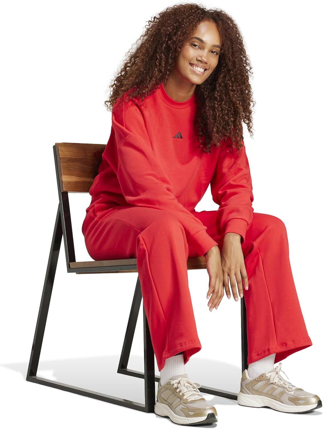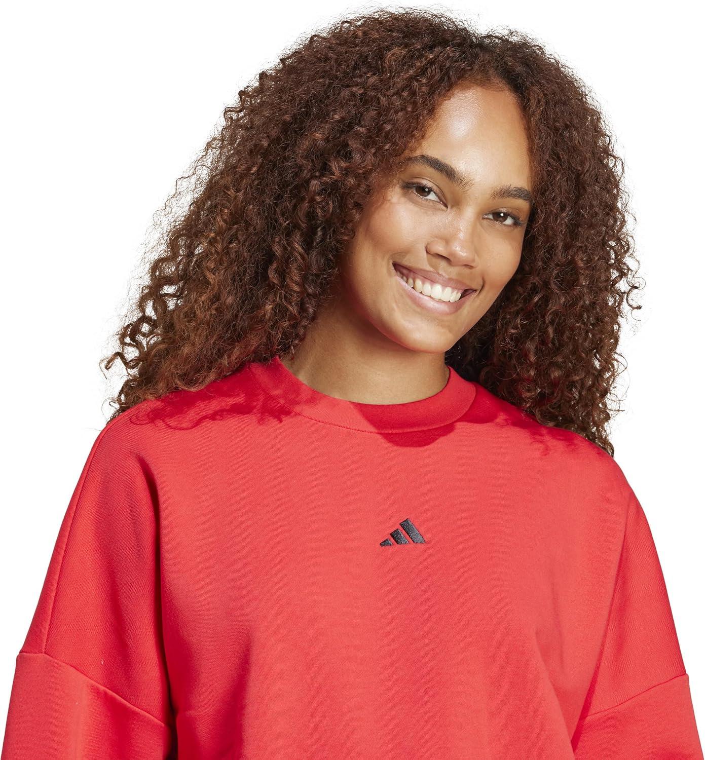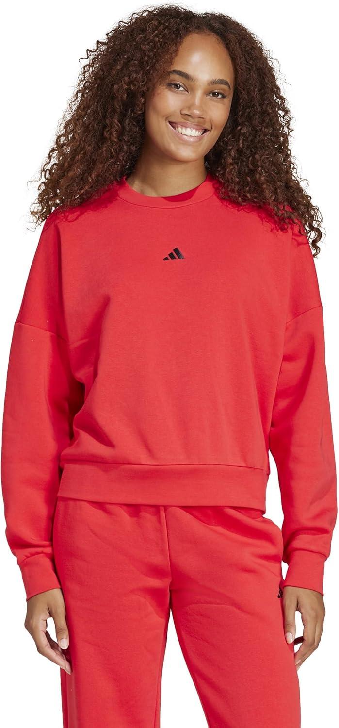 adidas Originals Women’s Essentials Small Logo Feel Cozy Sweatshirt(Pure Ruby/Black)