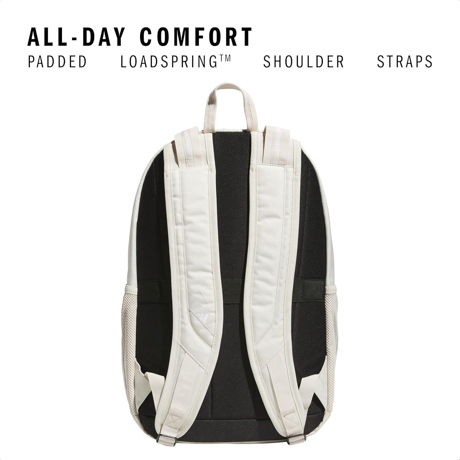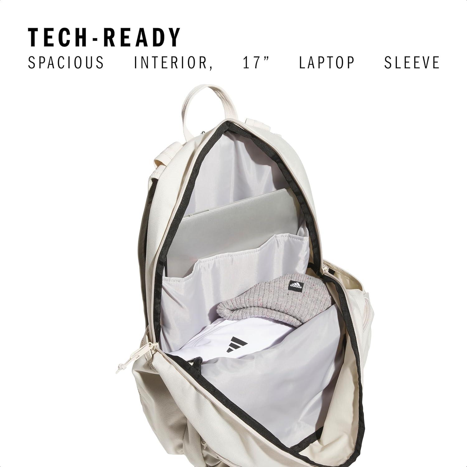 adidas Prime Backpack for Work, Travel Bag for Women and Men with Padded Compartment for Laptop, Black/White/2, One Size(Alumina Beige/White)