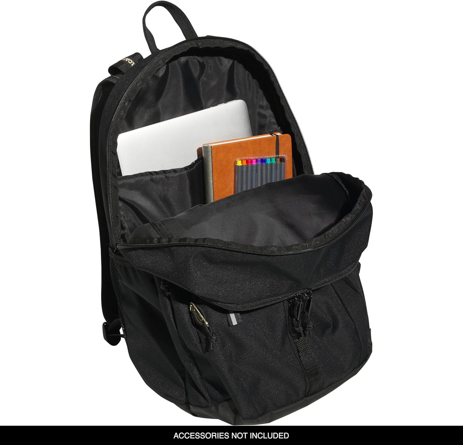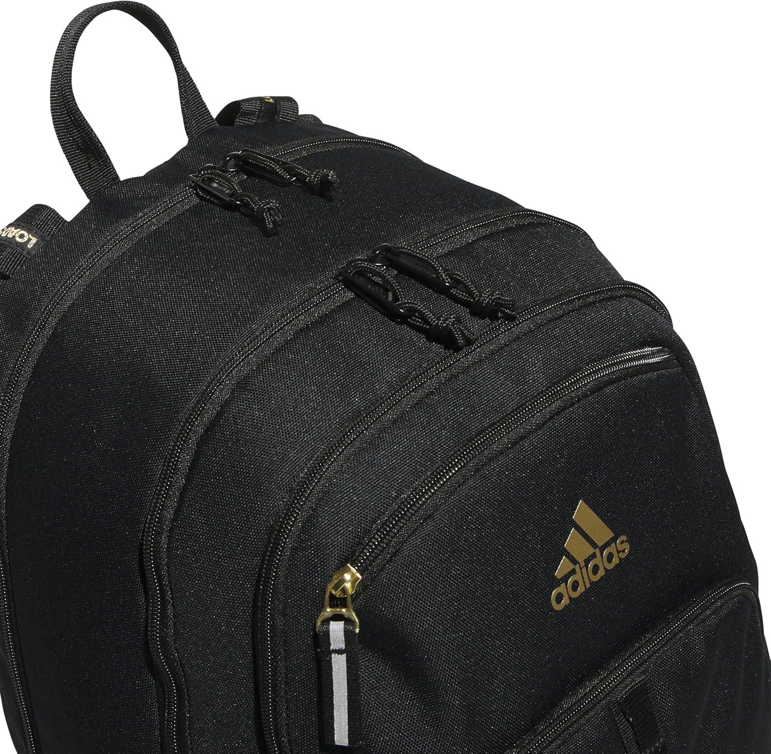 adidas Prime Backpack for Work, Travel Bag for Women and Men with Padded Compartment for Laptop, Black/White/2, One Size(Black/Gold + Black/Gold)