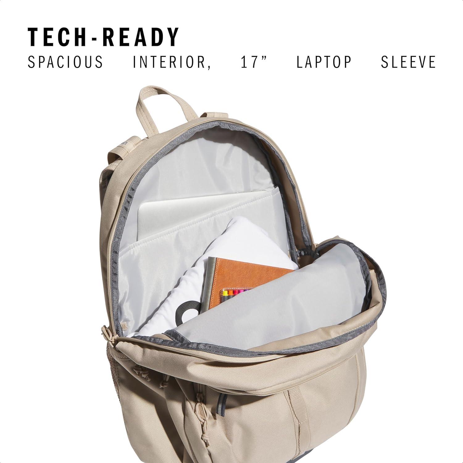 When your items are organized, your day runs more smoothly. Tuck everything you need in this adidas backpack, and you're ready to head out the door. It works well as a travel backpack and backpack for work with plenty of pockets. The padded compartment fits your laptop, making it an excellent tech backpack. Whether you need an everyday backpack, a laptop travel backpack, backpack for women, or backpack for men, this adidas backpack is suitable for both traveling and workouts. This adidas Prime 7 backpack with lots of pockets can store your essentials. Workday or workout, you're all set.