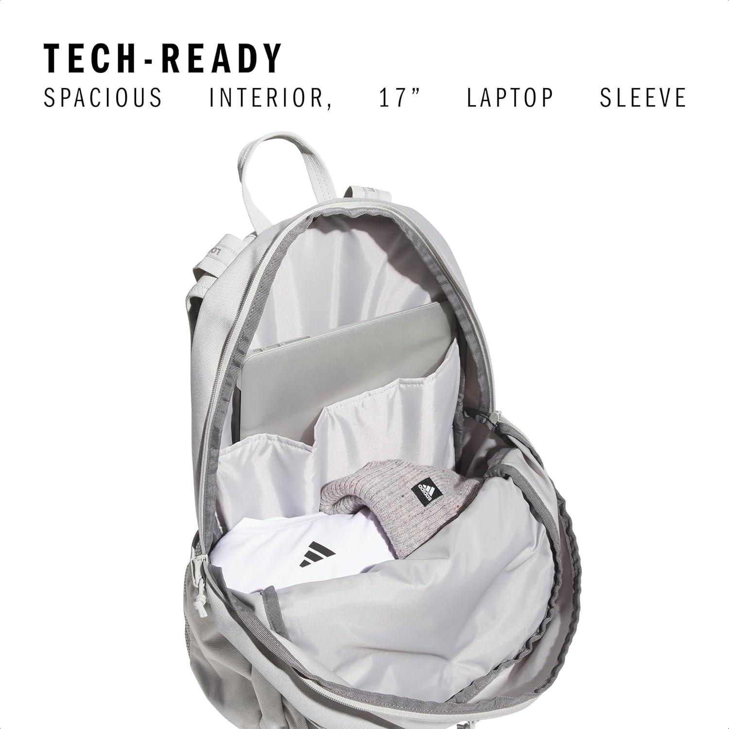 adidas Prime Backpack for Work, Travel Bag for Women and Men with Padded Compartment for Laptop, Black/White/2, One Size(Grey Two/Grey Four)