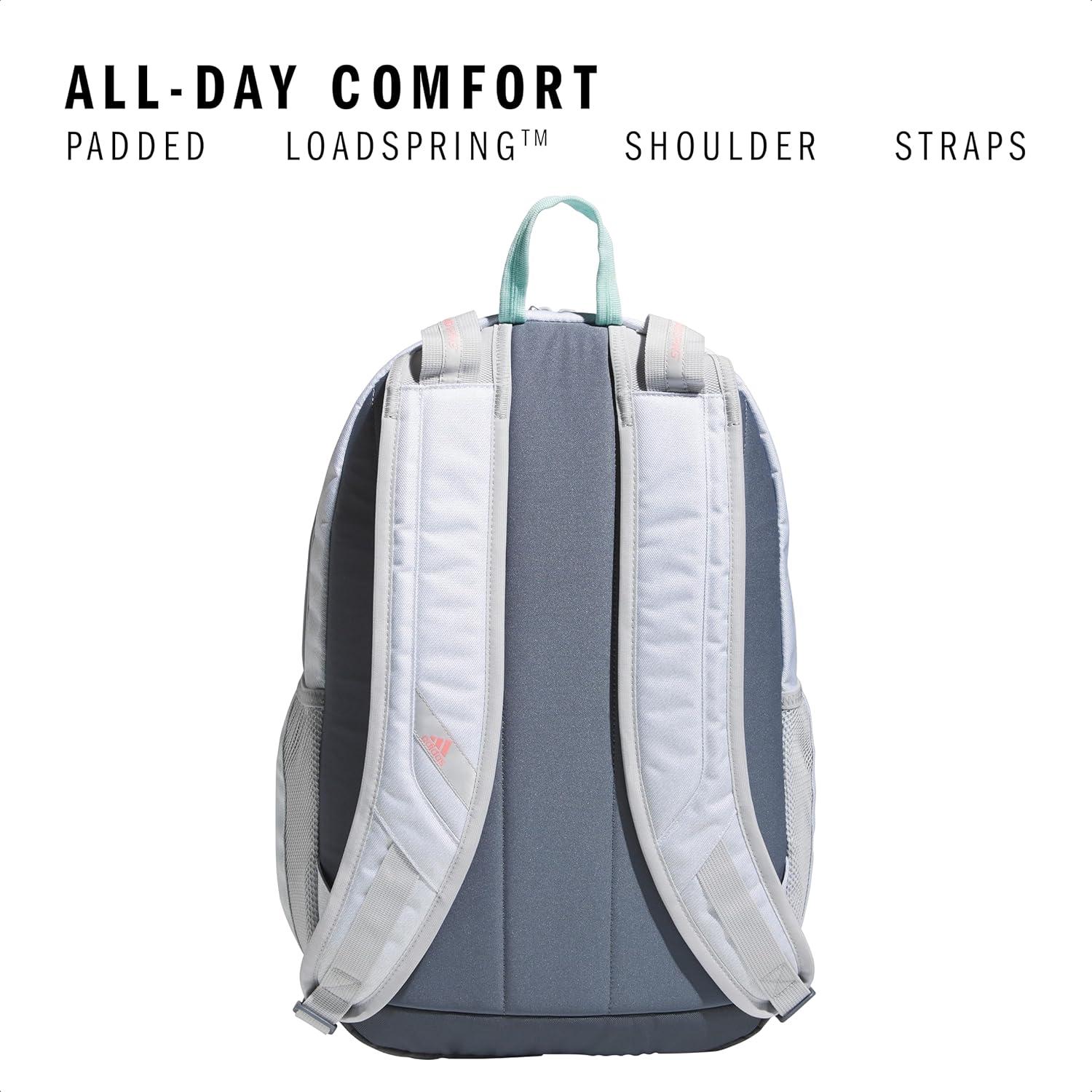 adidas Prime Backpack for Work, Travel Bag for Women and Men with Padded Compartment for Laptop, Black/White/2, One Size(Twill White/Semi Flash Aqua Blue)