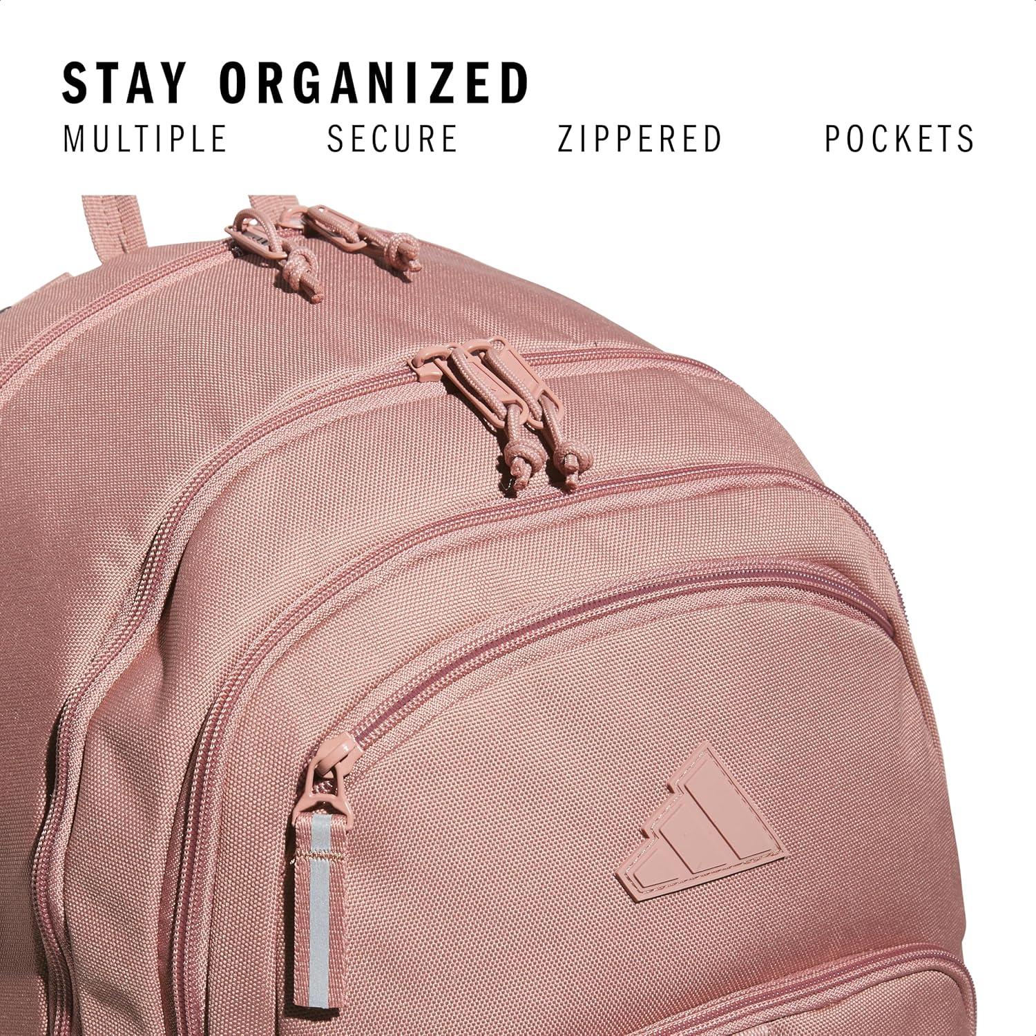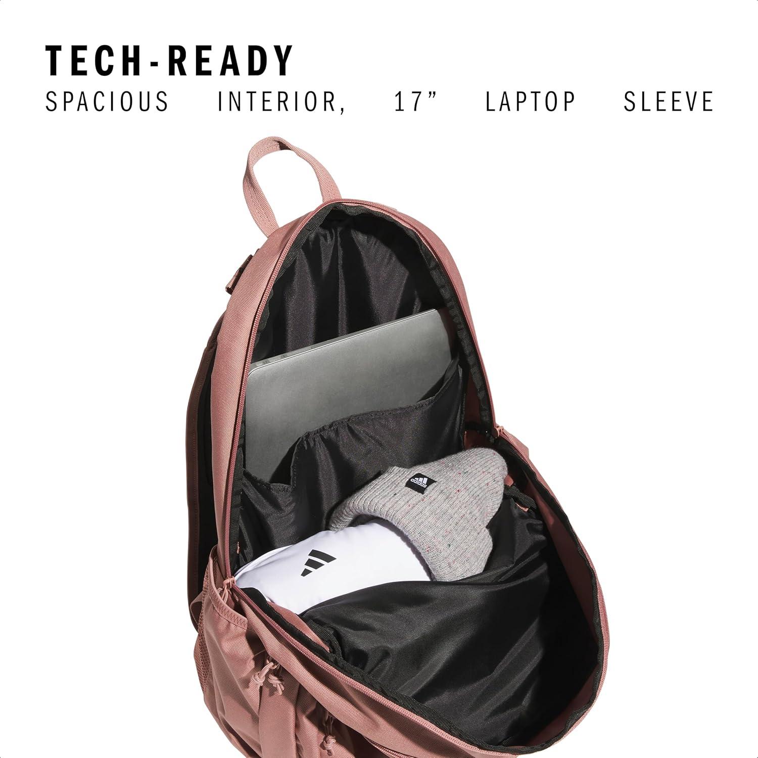 adidas Prime Backpack for Work, Travel Bag for Women and Men with Padded Compartment for Laptop, Black/White/2, One Size(Warm Clay Pink/Black)
