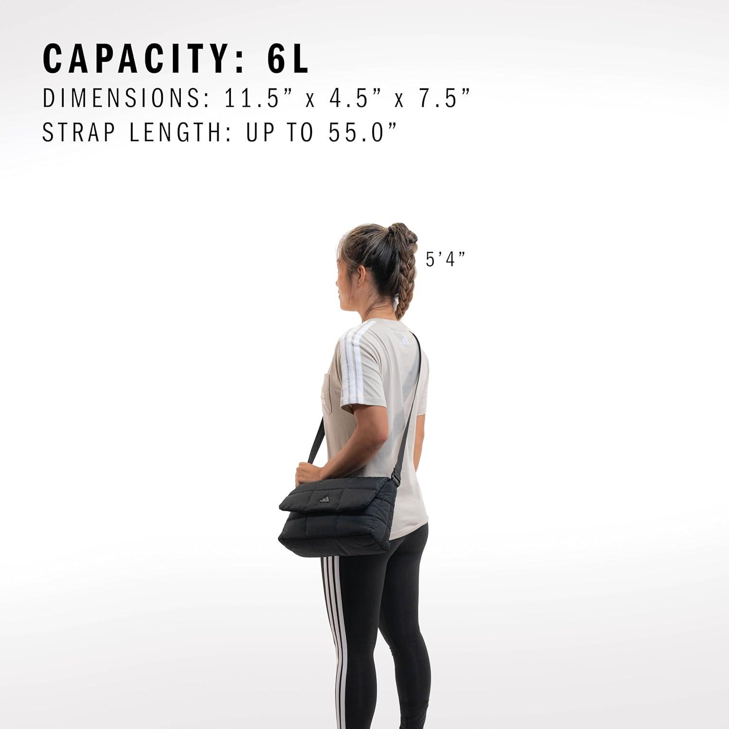 Keep the essentials within easy reach while enjoying the plush, cozy feel of this Quilted Crossbody from adidas. The strap adjusts up to 55 inches, giving you carrying options. The zippered main compartment with a top flap secures a laptop or a tablet, any small items and more.
