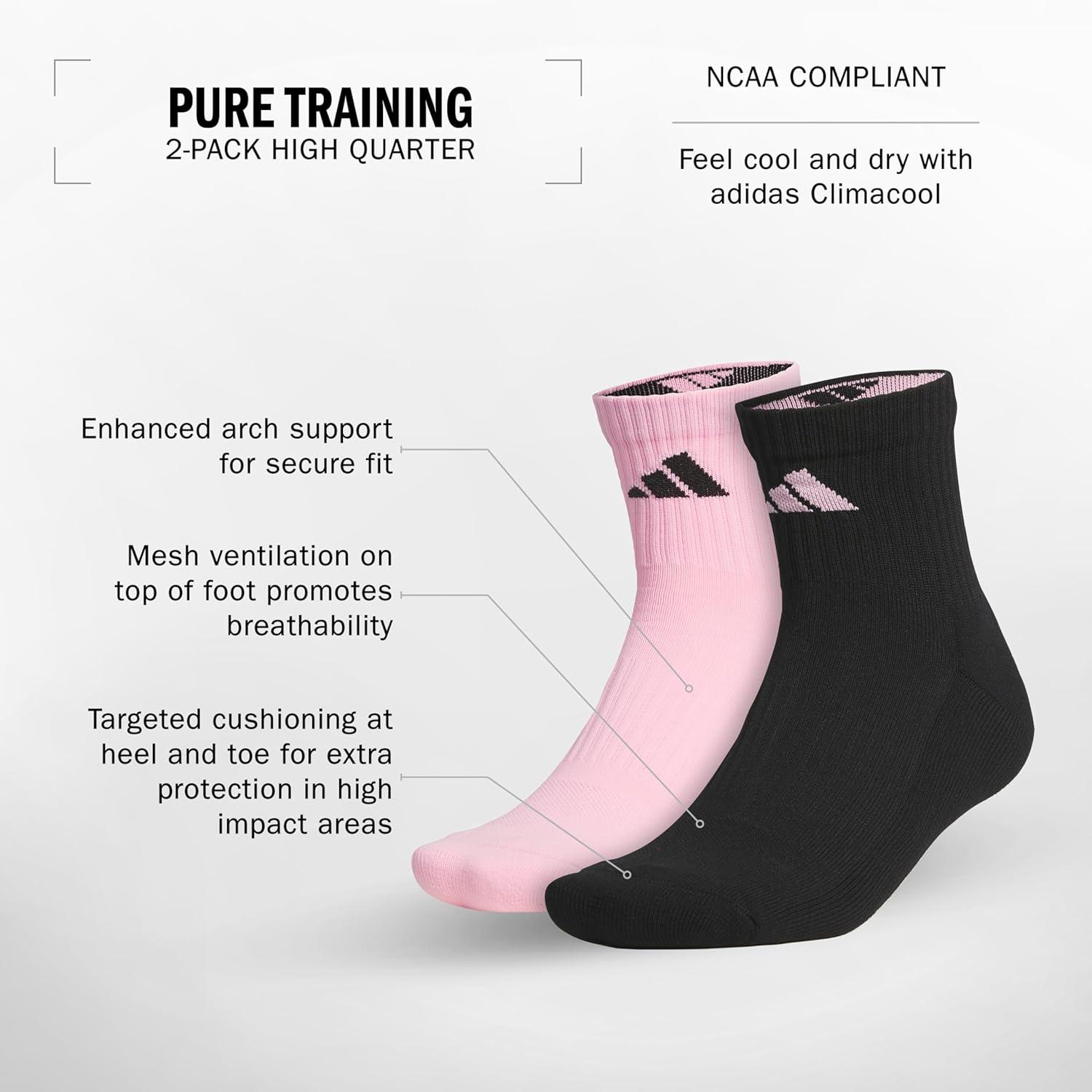 adidas Pure Training High Quarter Sports Performance Socks (2-Pair)(True Pink/Black)