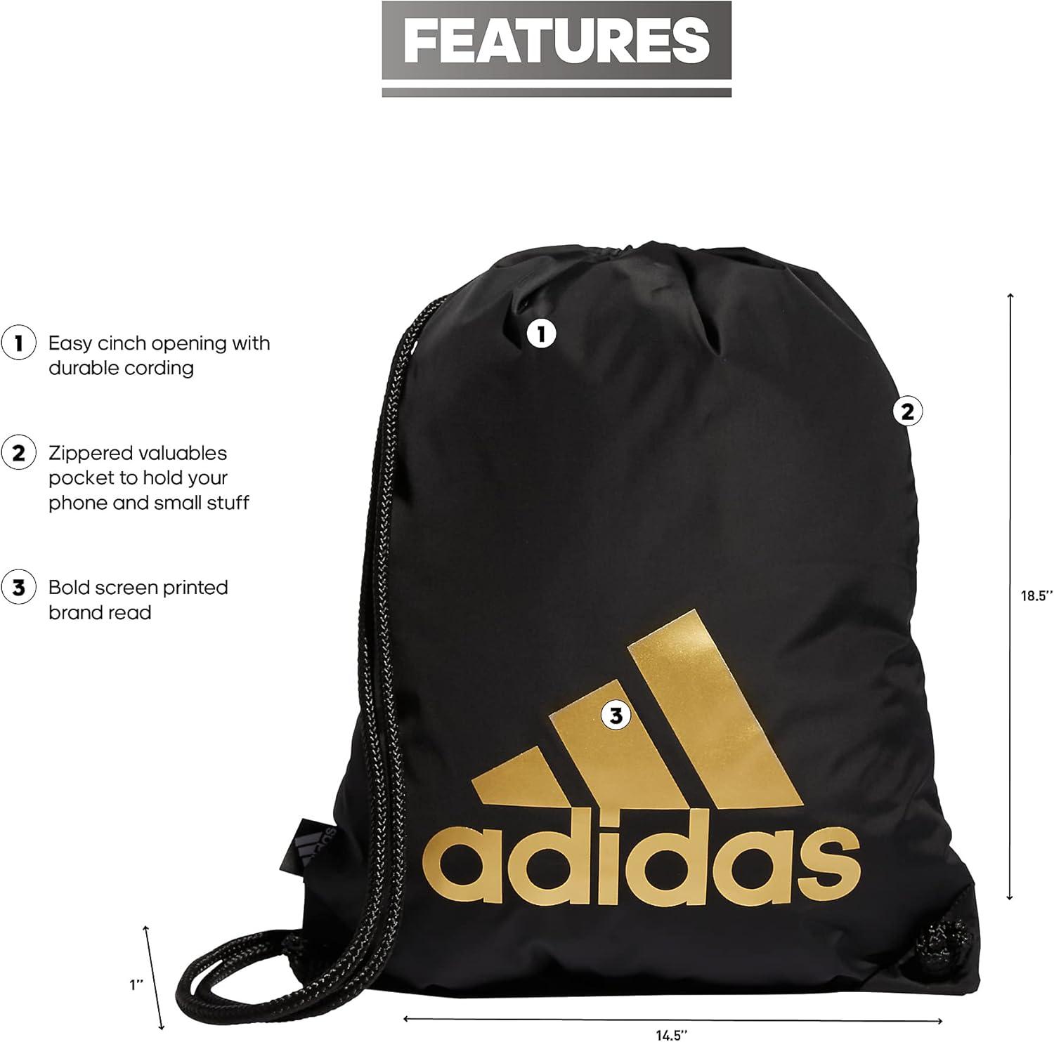 adidas Ready Sackpack – Drawstring Backpack Lightweight Small Gym Bag, Black/Gold Metallic/1.0, One Size(Black/Gold Metallic/1.0)