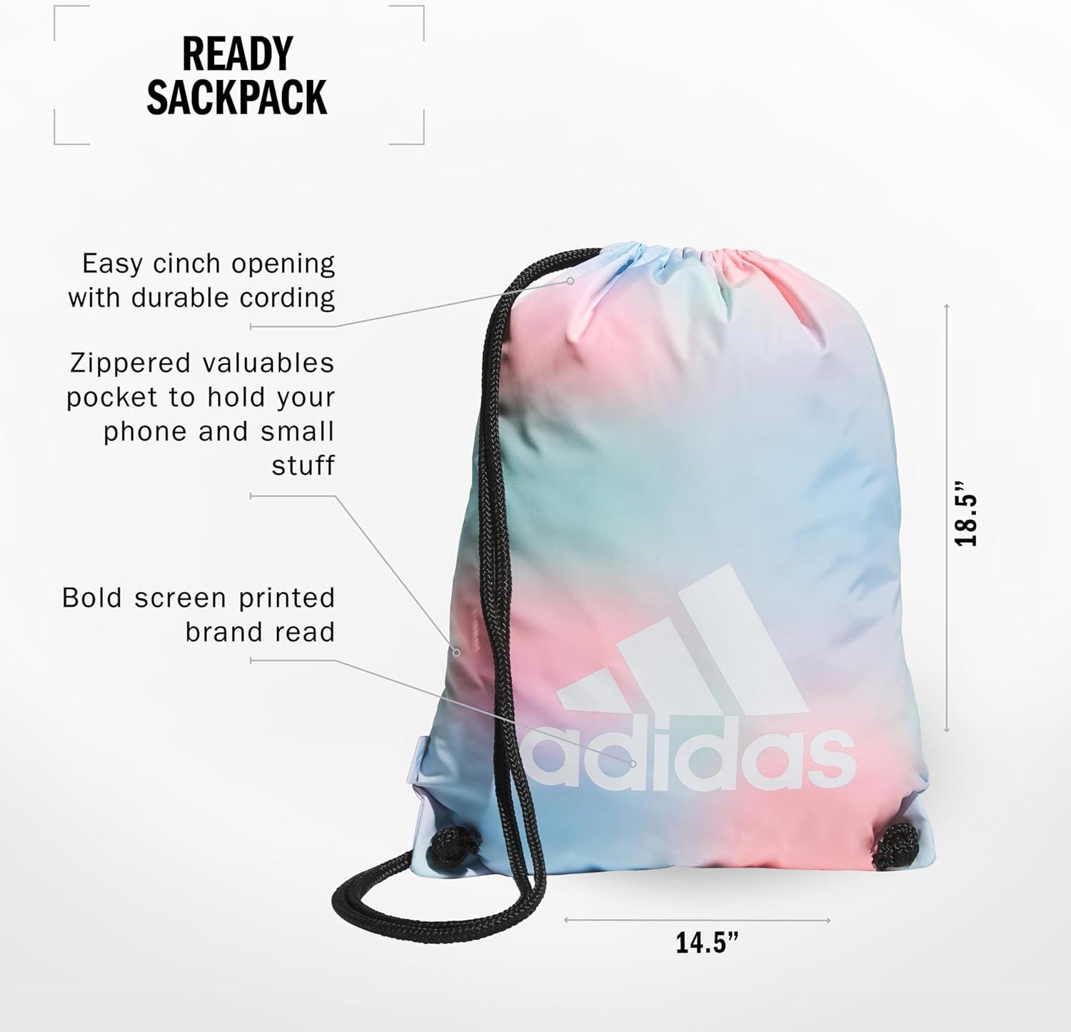 adidas Ready Sackpack – Drawstring Backpack Lightweight Small Gym Bag, Black/Gold Metallic/1.0, One Size(Dazed Gradient Clear Sky/White/1.0)