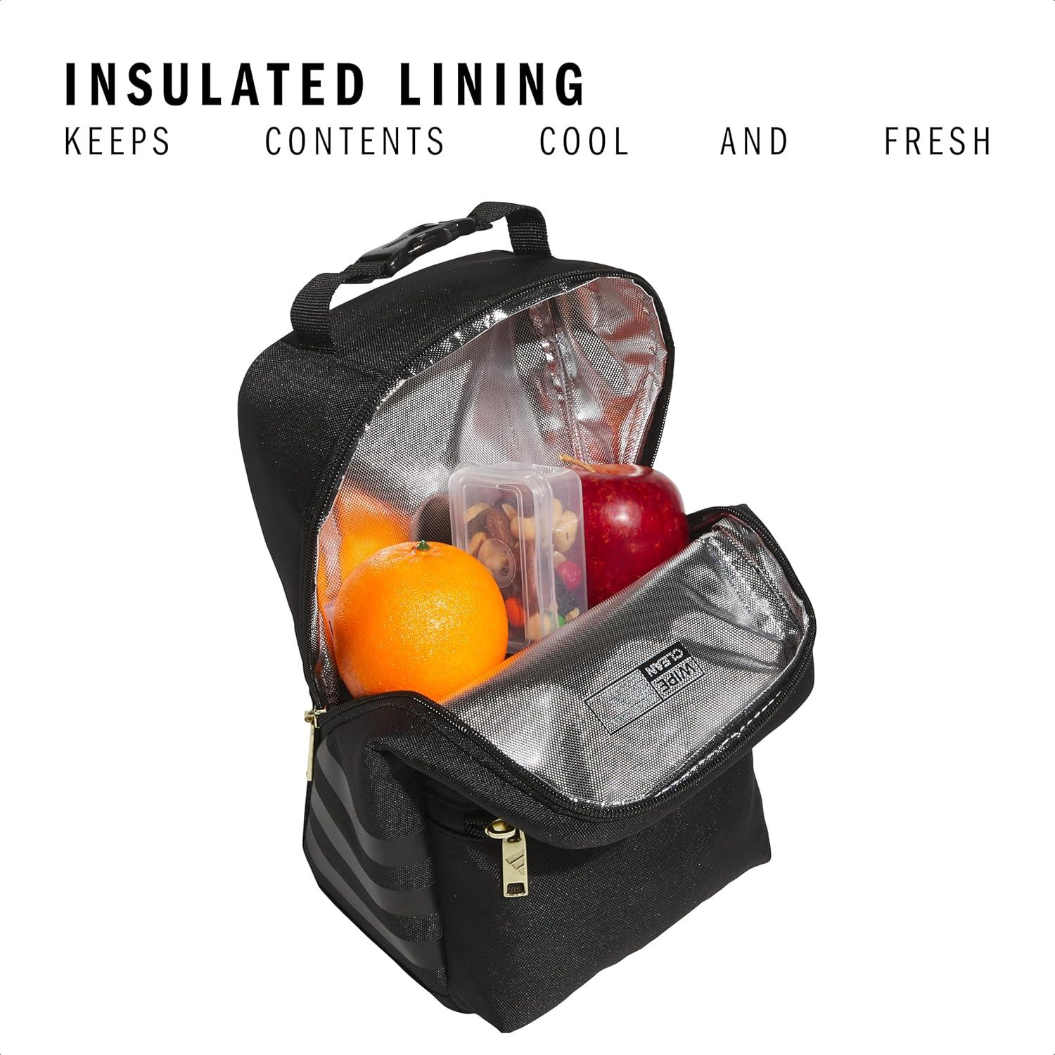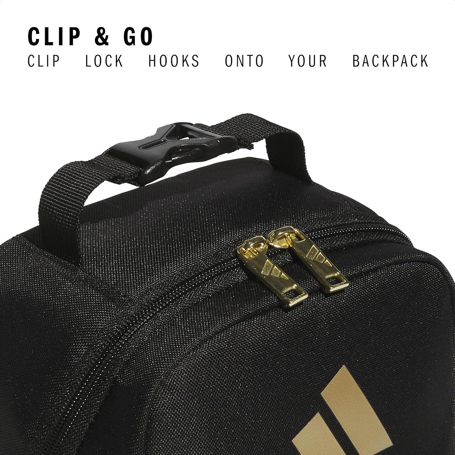 adidas Santiago Lunch Bag Cooler for Women and Men, Insulated Food Container Box with Mesh Pocket, Black/White/3.0, One Size(Black/Gold Metallic/3.0)