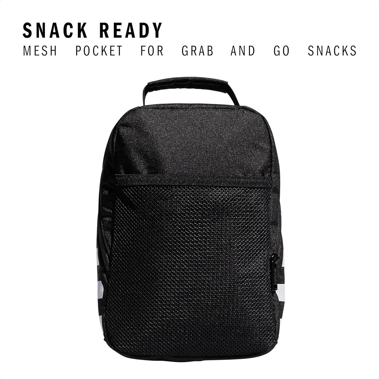 adidas Santiago Lunch Bag Cooler for Women and Men, Insulated Food Container Box with Mesh Pocket, Black/White/3.0, One Size(Black/White/1.0)