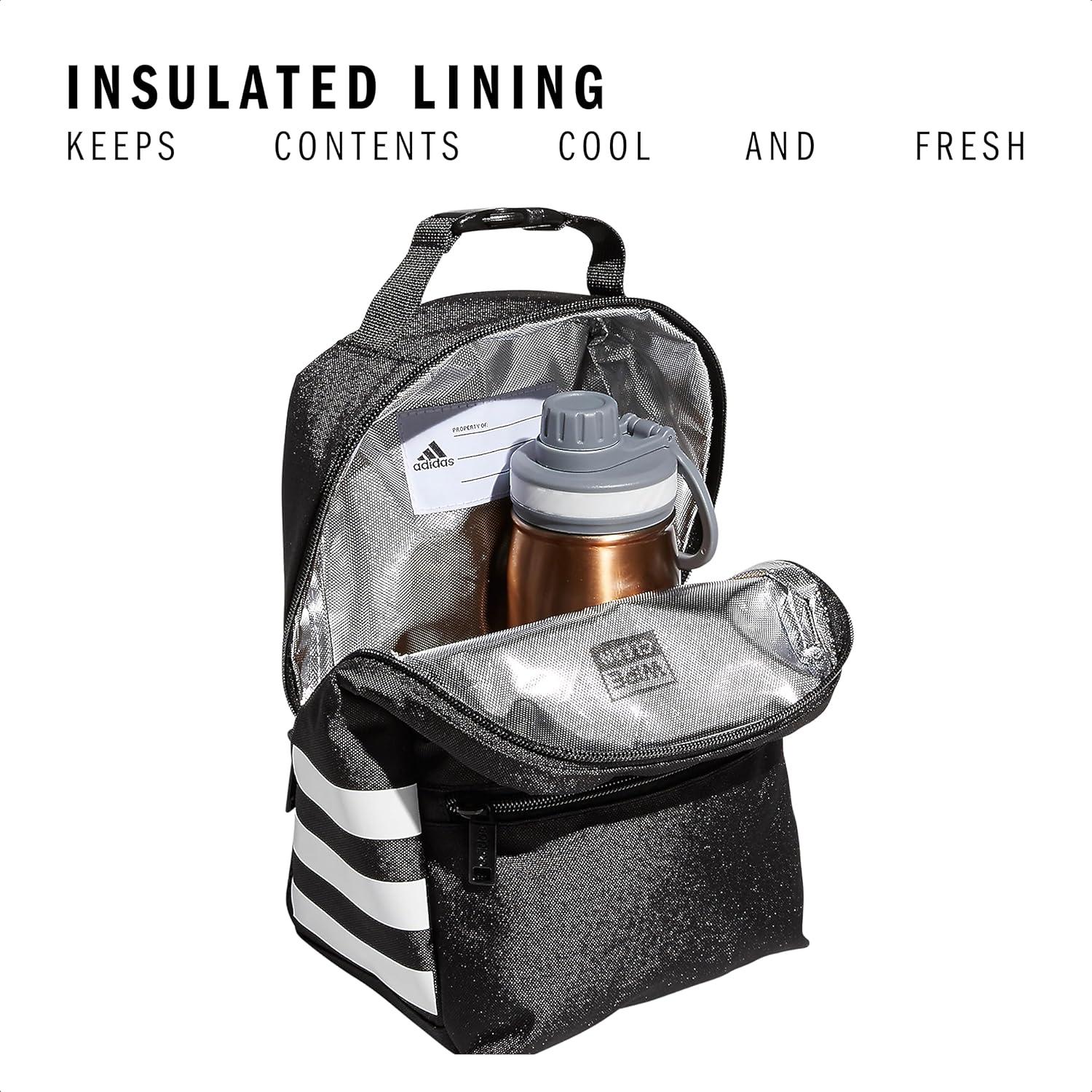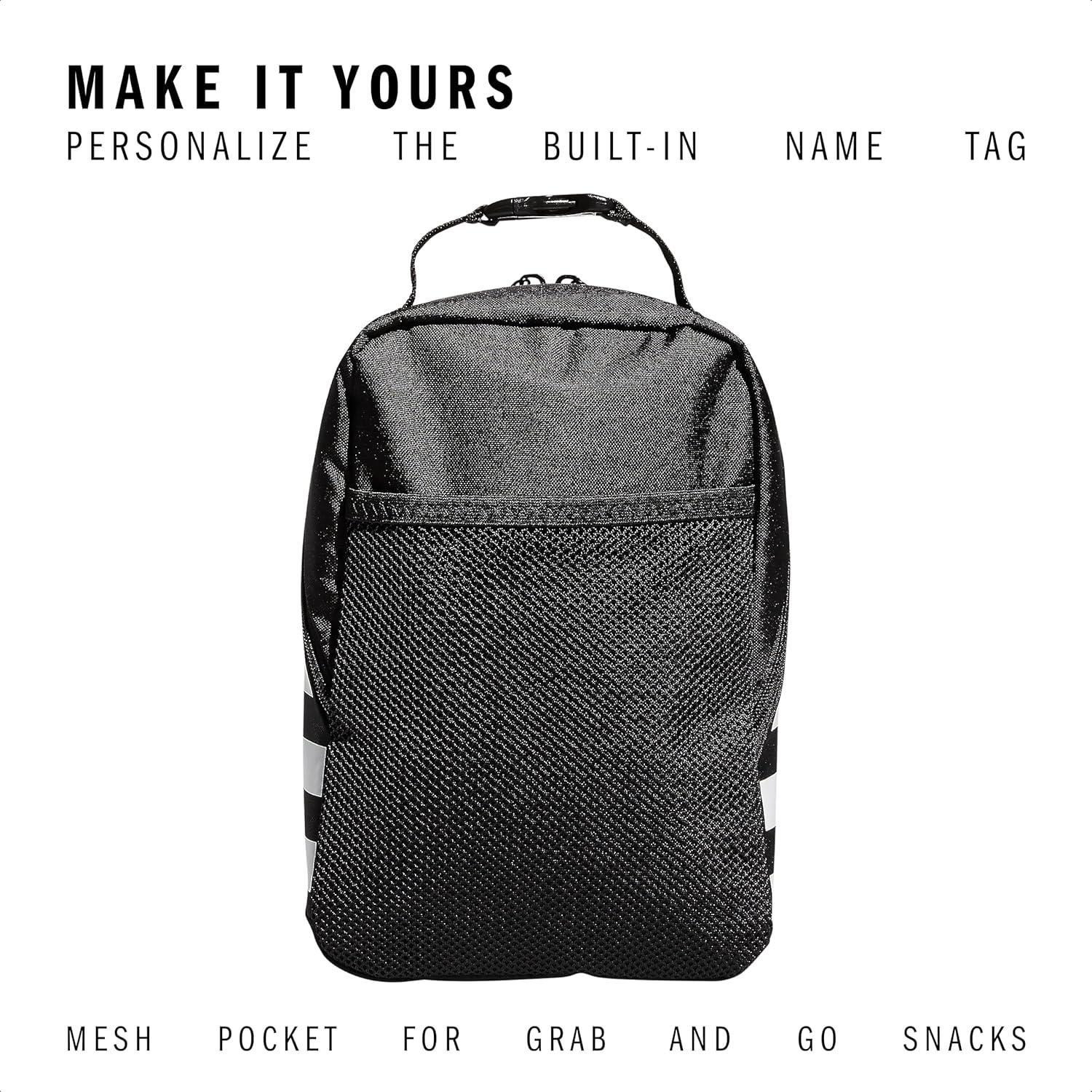 adidas Santiago Lunch Bag Cooler for Women and Men, Insulated Food Container Box with Mesh Pocket, Black/White/3.0, One Size(Black/White/2.0)