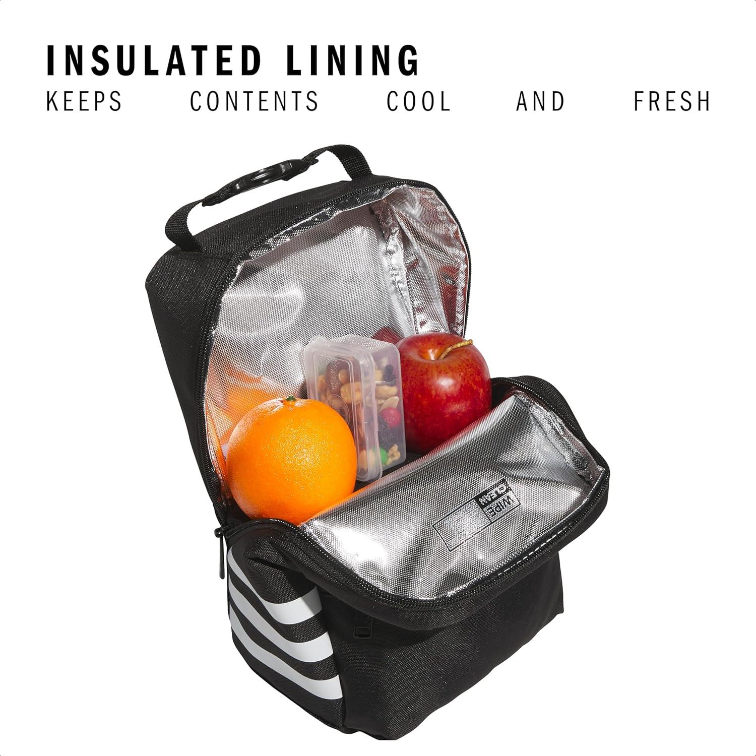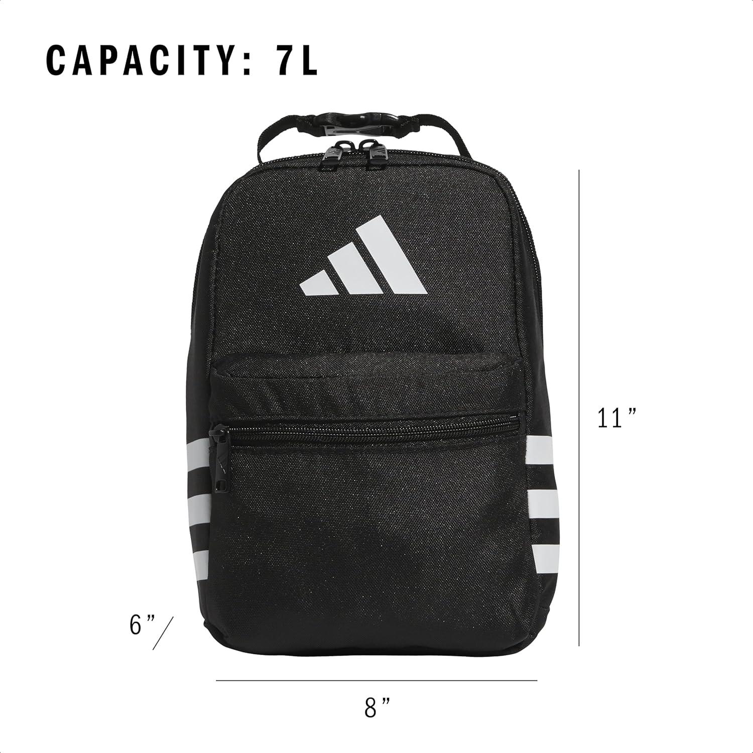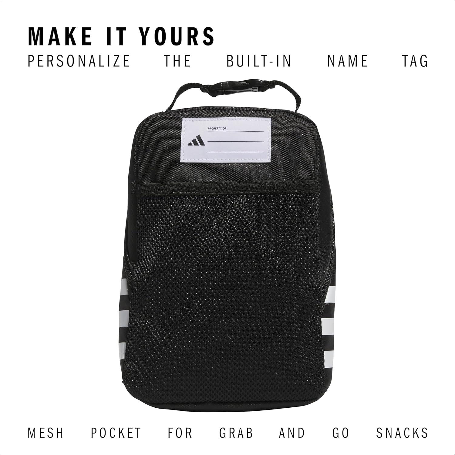 adidas Santiago Lunch Bag Cooler for Women and Men, Insulated Food Container Box with Mesh Pocket, Black/White/3.0, One Size(Black/White/3.0)