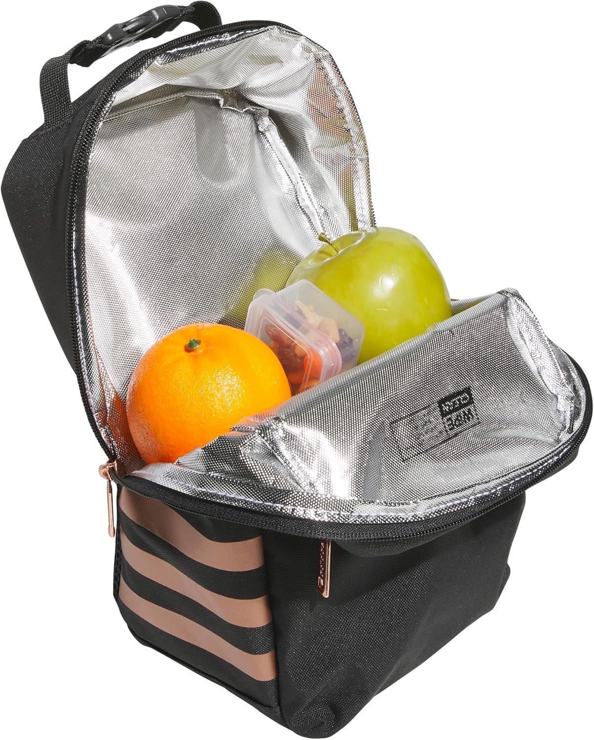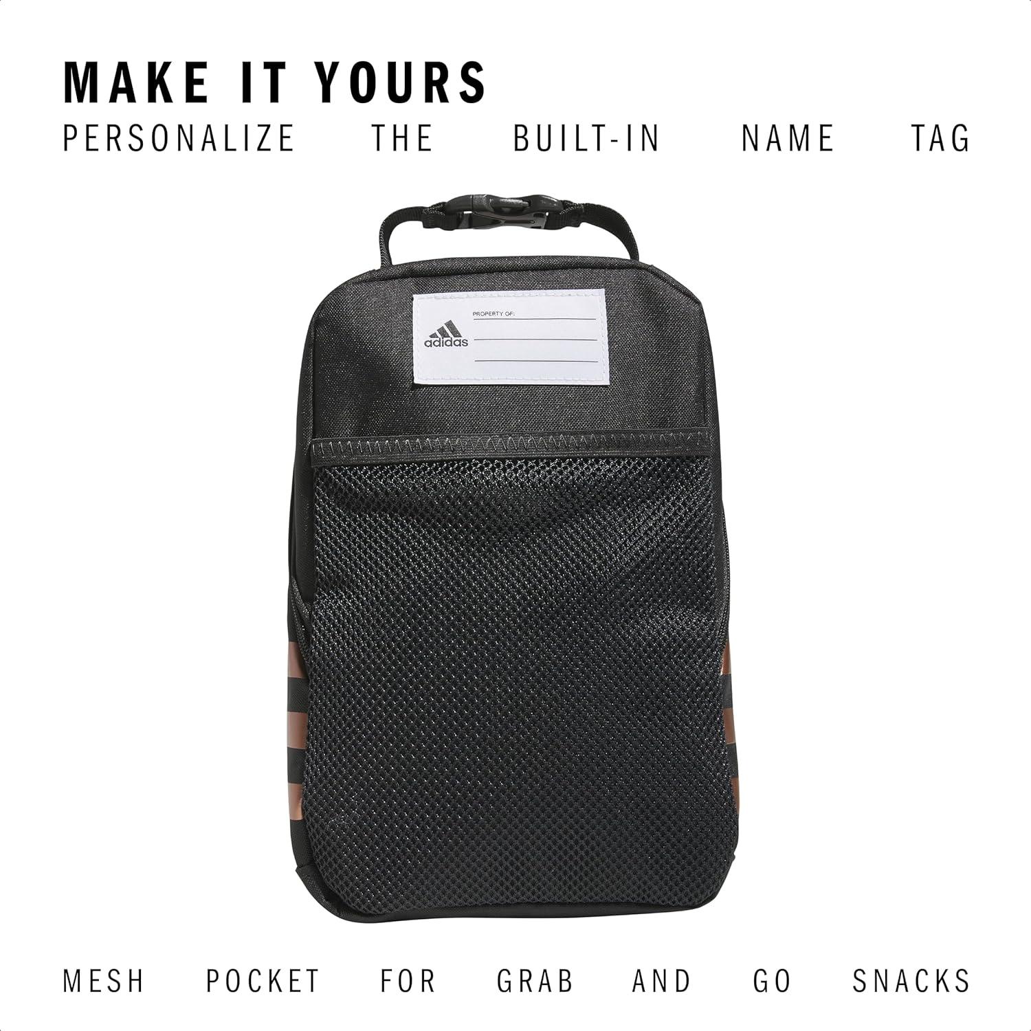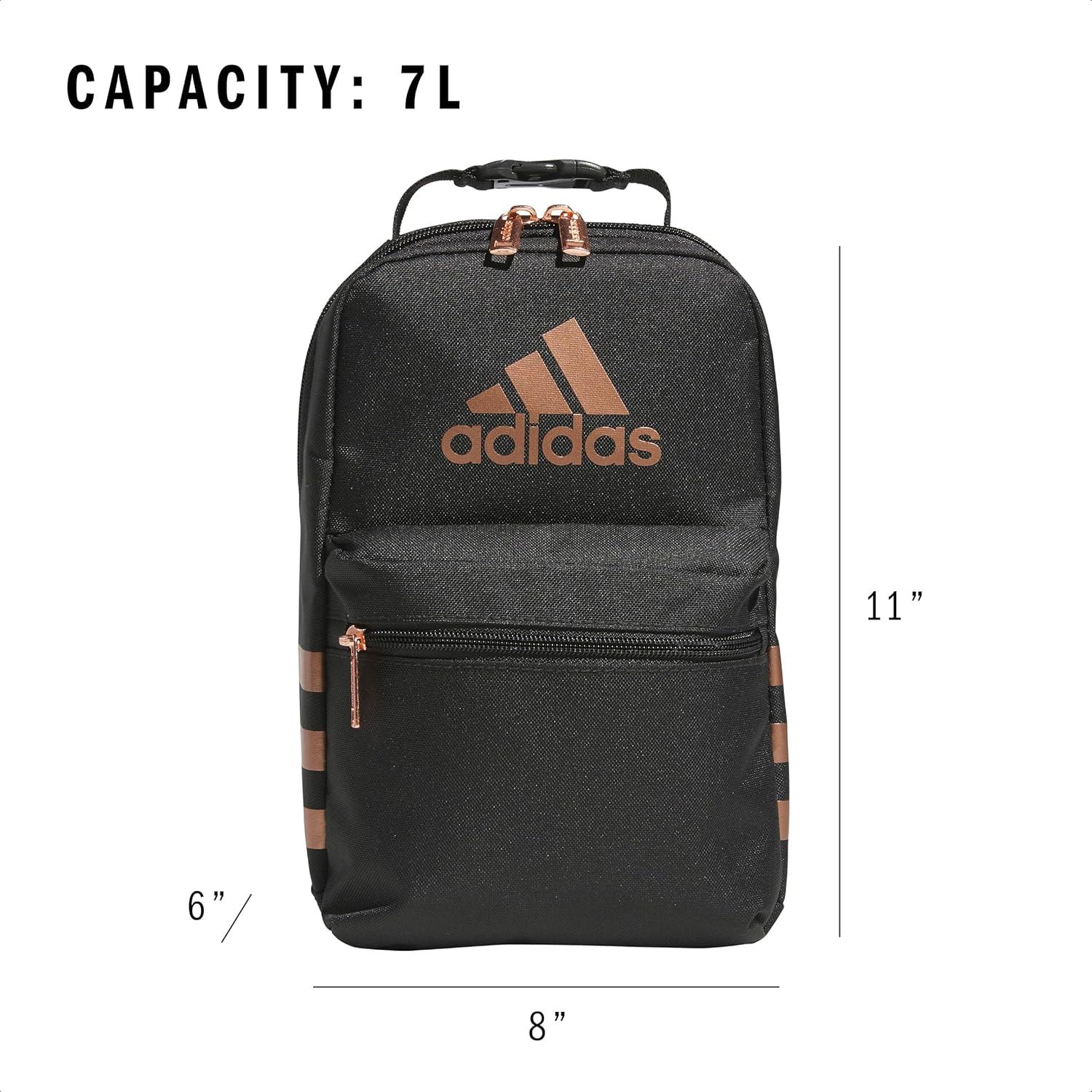 adidas Santiago Lunch Bag Cooler for Women and Men, Insulated Food Container Box with Mesh Pocket, Black/White/3.0, One Size(Carbon Grey/Rose Gold/3.0)