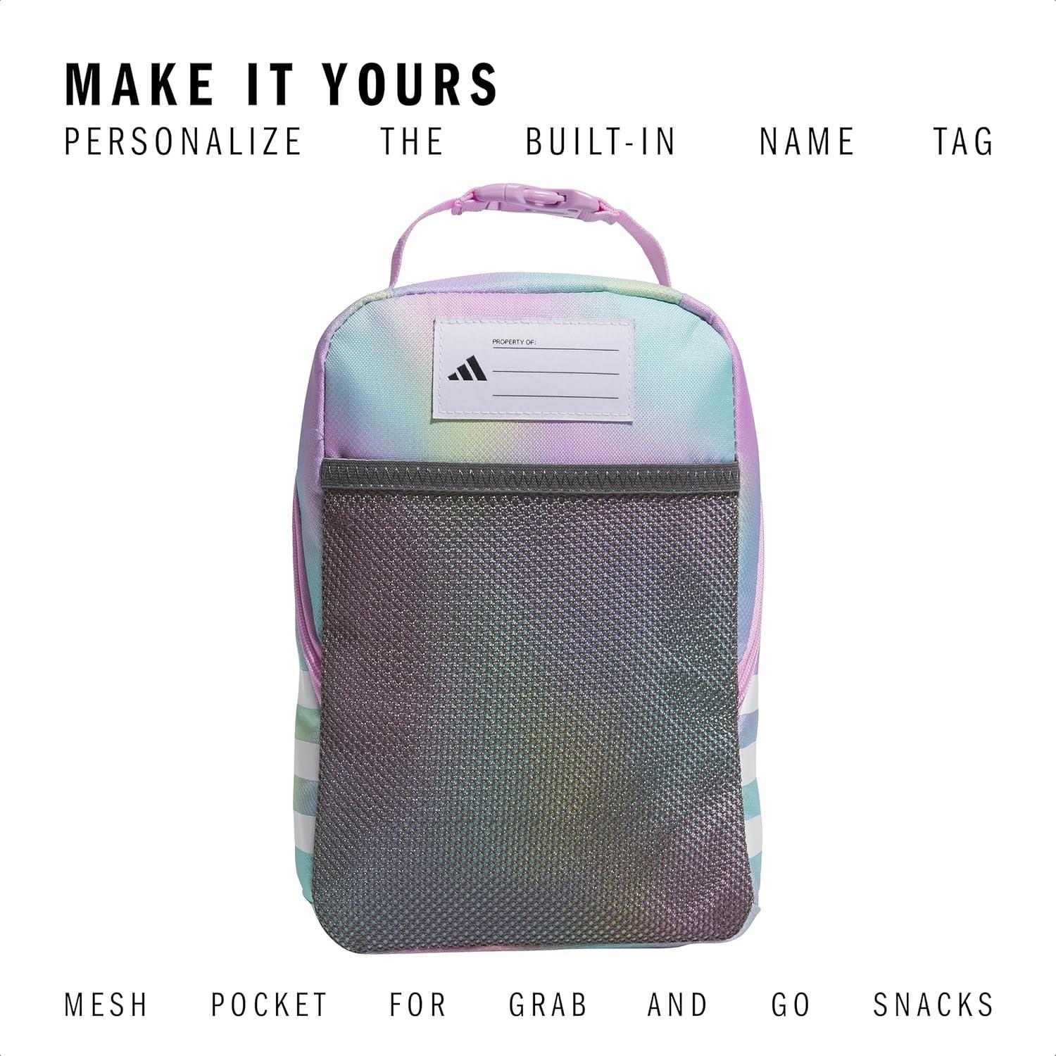 adidas Santiago Lunch Bag Cooler for Women and Men, Insulated Food Container Box with Mesh Pocket, Black/White/3.0, One Size(Halftone Gradient Bliss Lilac/Bliss Lilac Purple/3.0)