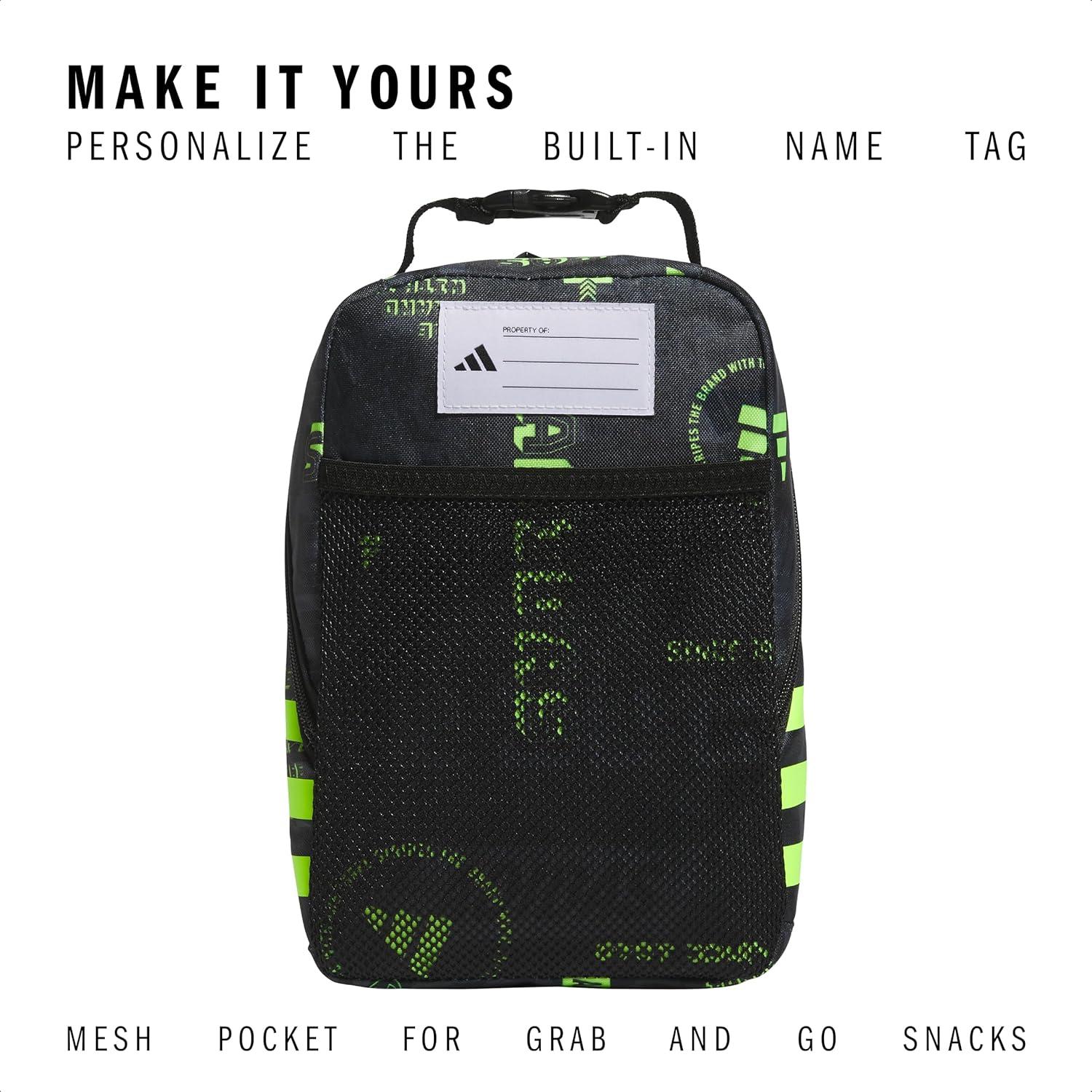 adidas Santiago Lunch Bag Cooler for Women and Men, Insulated Food Container Box with Mesh Pocket, Black/White/3.0, One Size(Upscaled Mix-black/Black/Lucid Lemon Yellow/3.0)