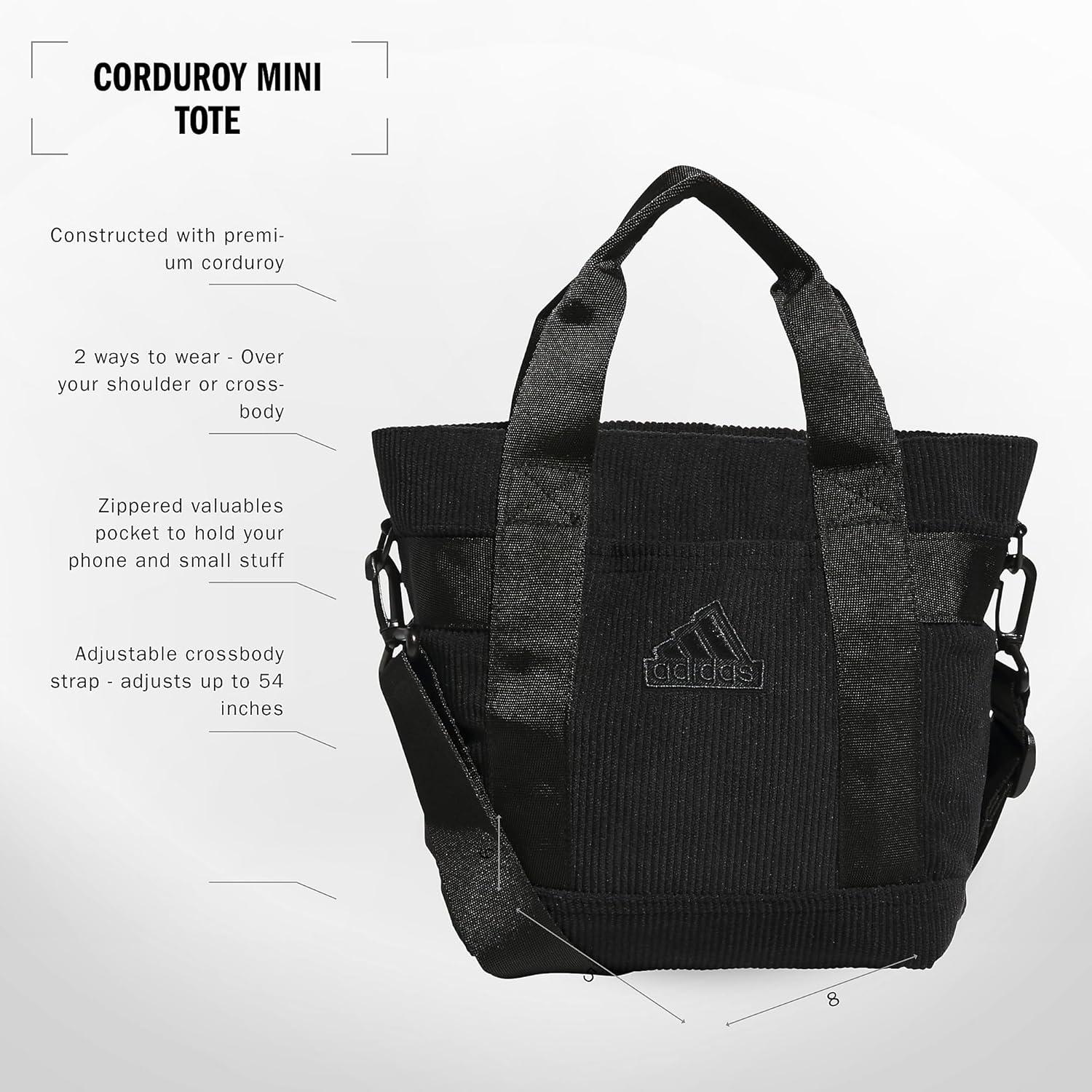 adidas Small Tote Mini Bag for Women and Men(Corduroy/Black)