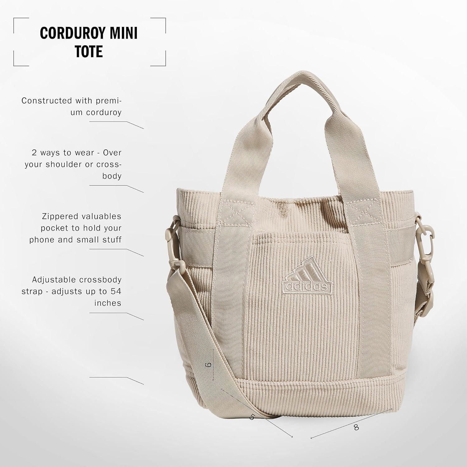 adidas Small Tote Mini Bag for Women and Men(Corduroy/Wonder Beige)