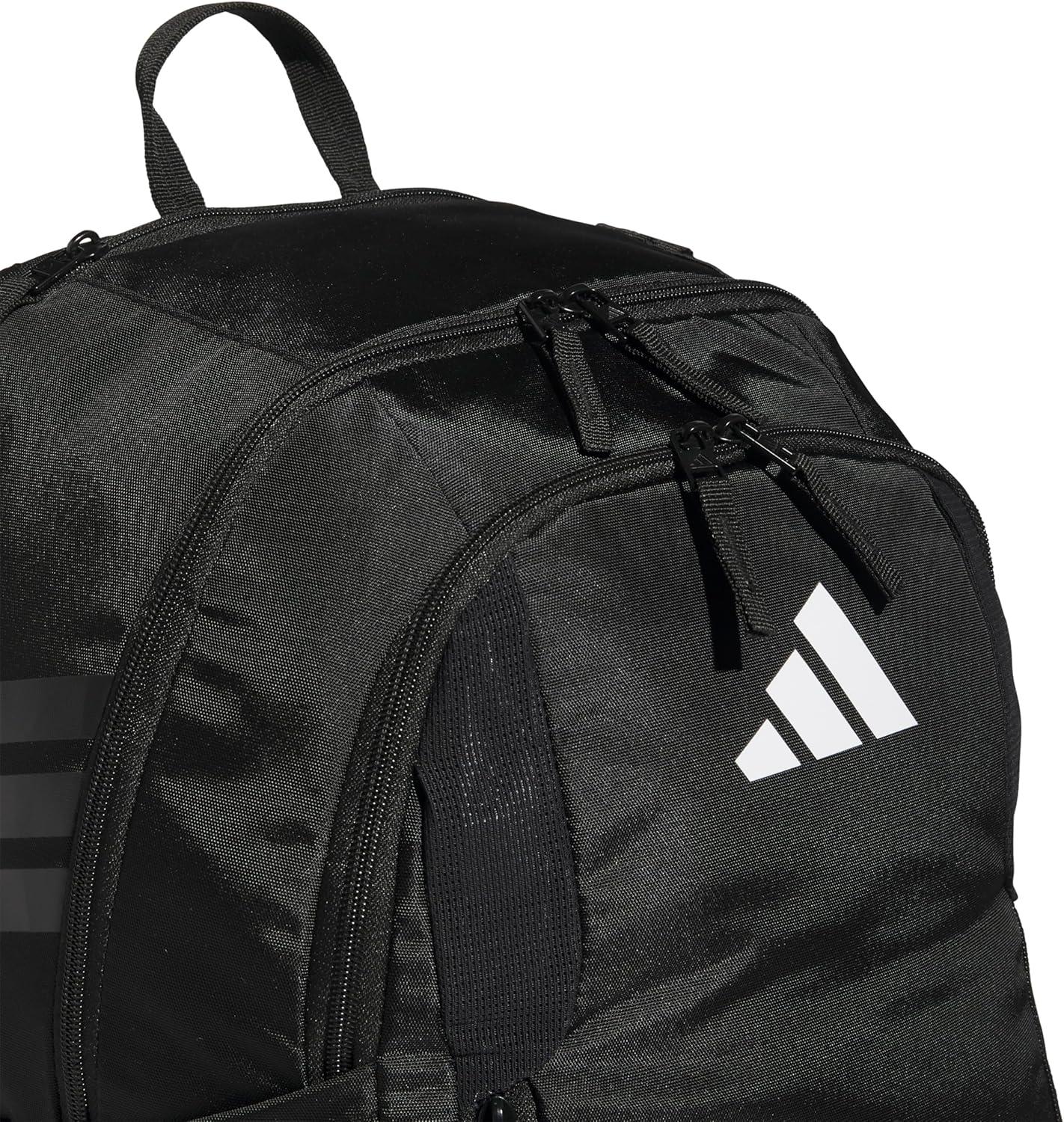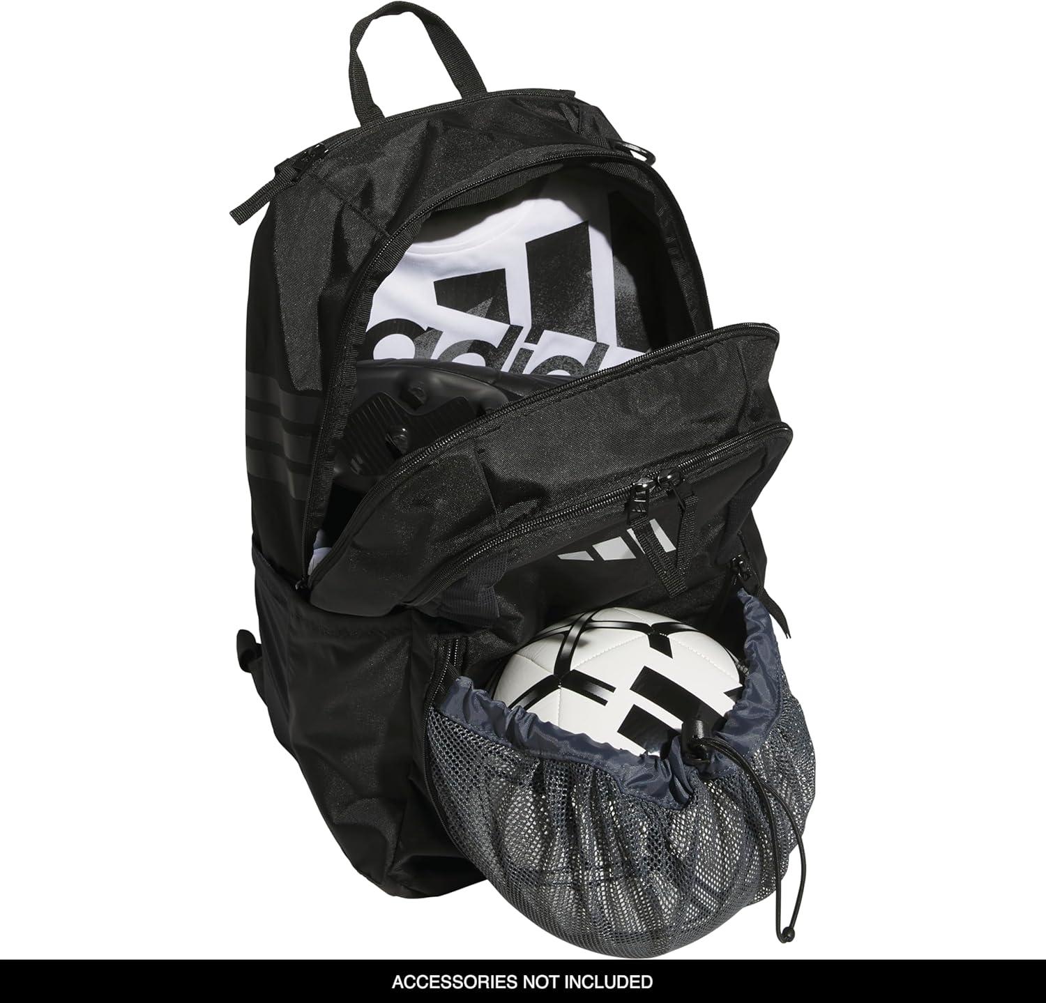adidas Stadium Team Sports Backpack (36L) + 750 ml (28 oz) Refillable Plastic Sport Water Bottle, Navy Blue 2 + Blue/Silver Metallic, One Size(Black + Black/White/Black)