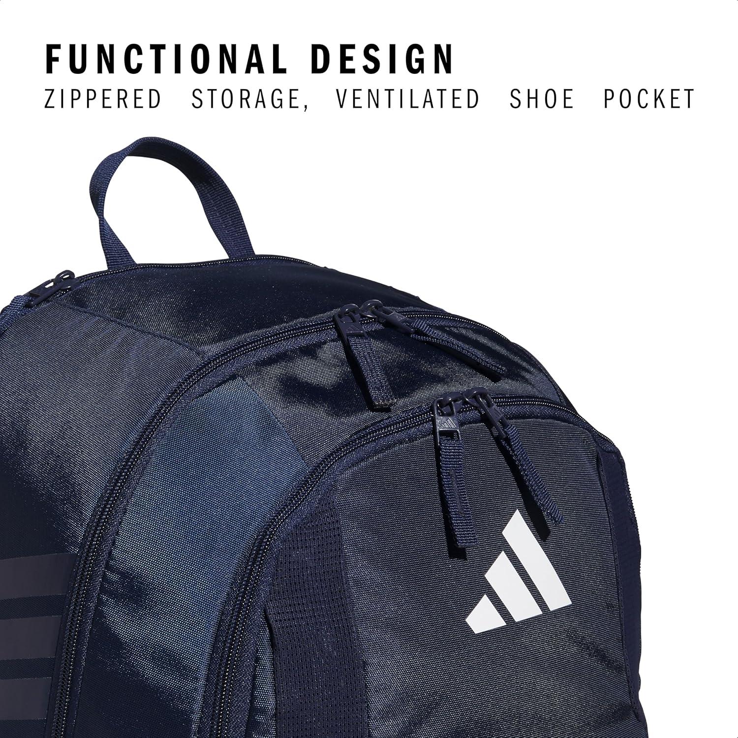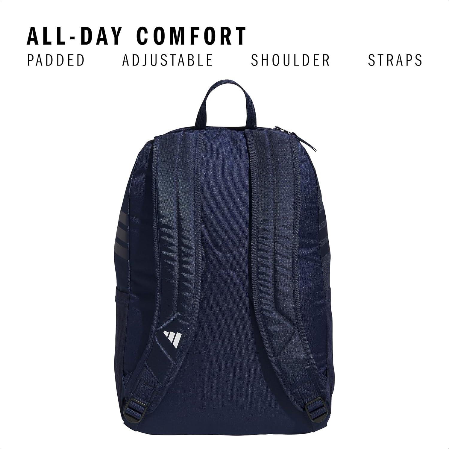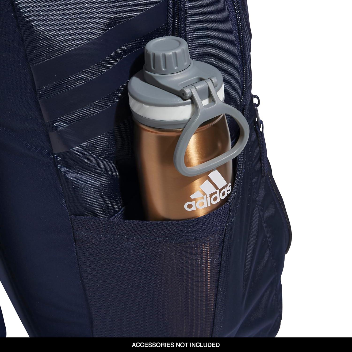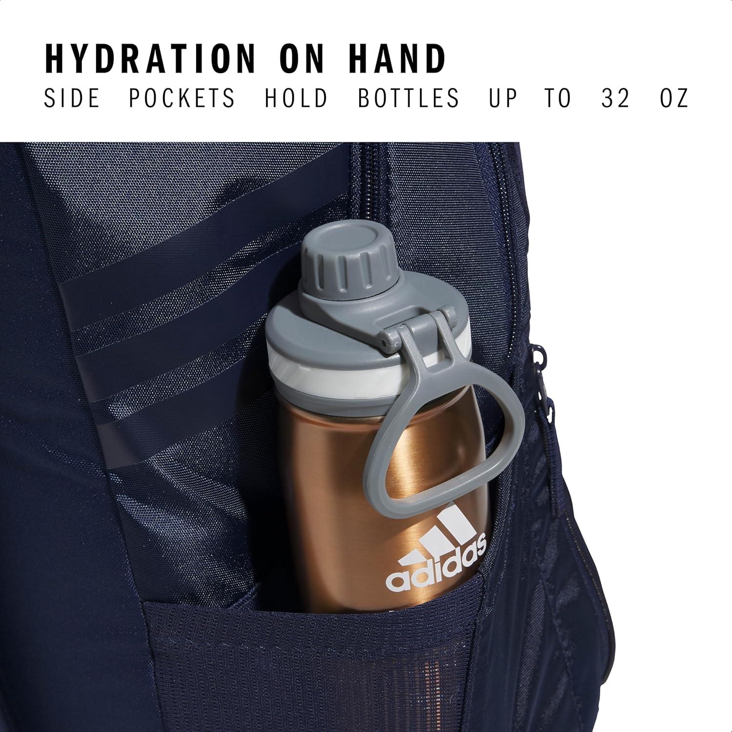 adidas Stadium Team Sports Backpack (36L) + 750 ml (28 oz) Refillable Plastic Sport Water Bottle, Navy Blue 2 + Blue/Silver Metallic, One Size(Navy Blue 2/4.0)