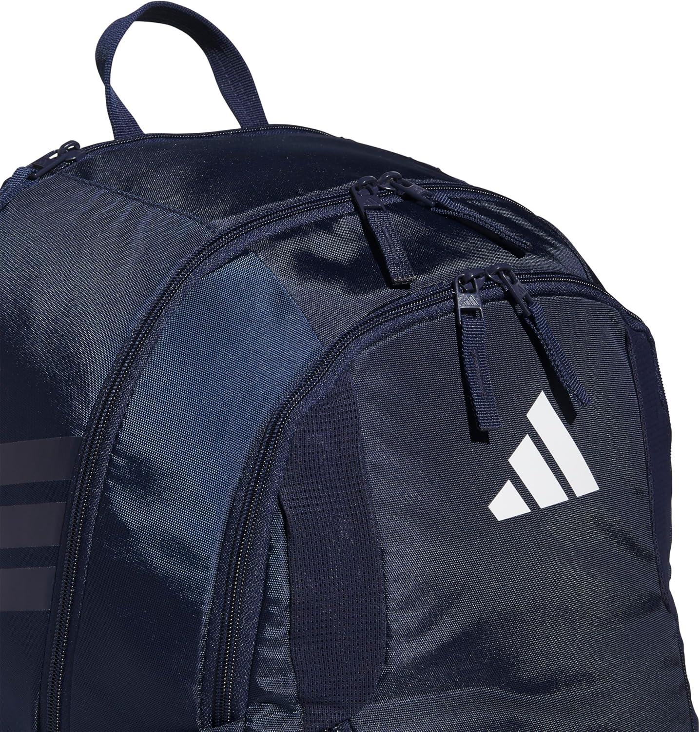 adidas Stadium Team Sports Backpack (36L) + 750 ml (28 oz) Refillable Plastic Sport Water Bottle, Navy Blue 2 + Blue/Silver Metallic, One Size(Navy Blue 2 + Blue/Silver Metallic)