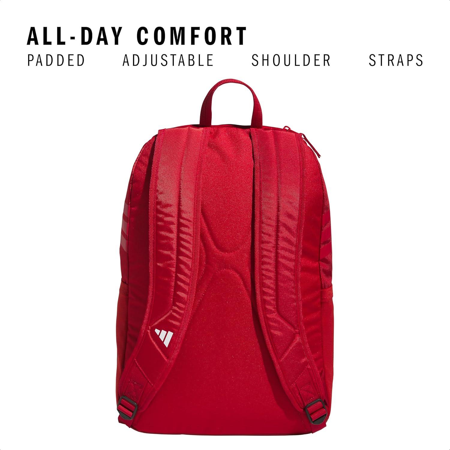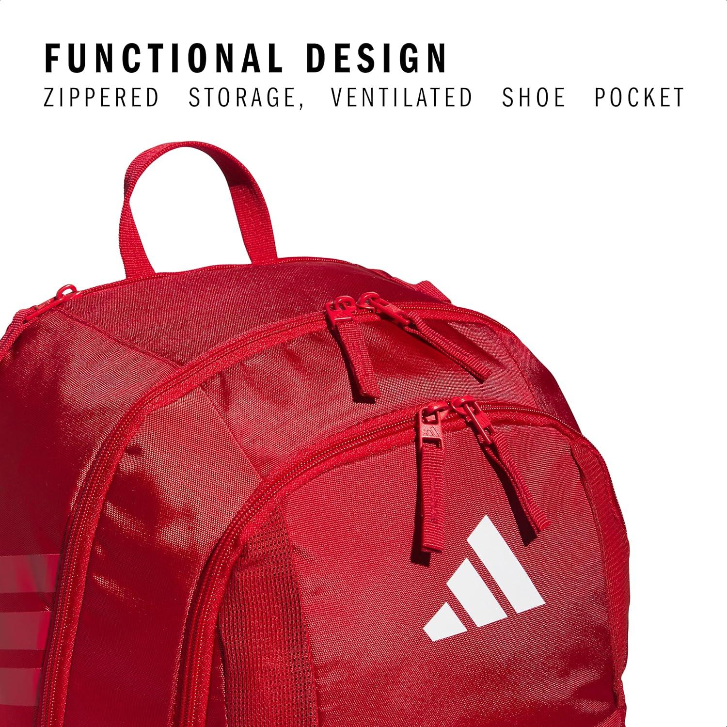 adidas Stadium Team Sports Backpack (36L) + 750 ml (28 oz) Refillable Plastic Sport Water Bottle, Navy Blue 2 + Blue/Silver Metallic, One Size(Power Red 2/White/4.0)