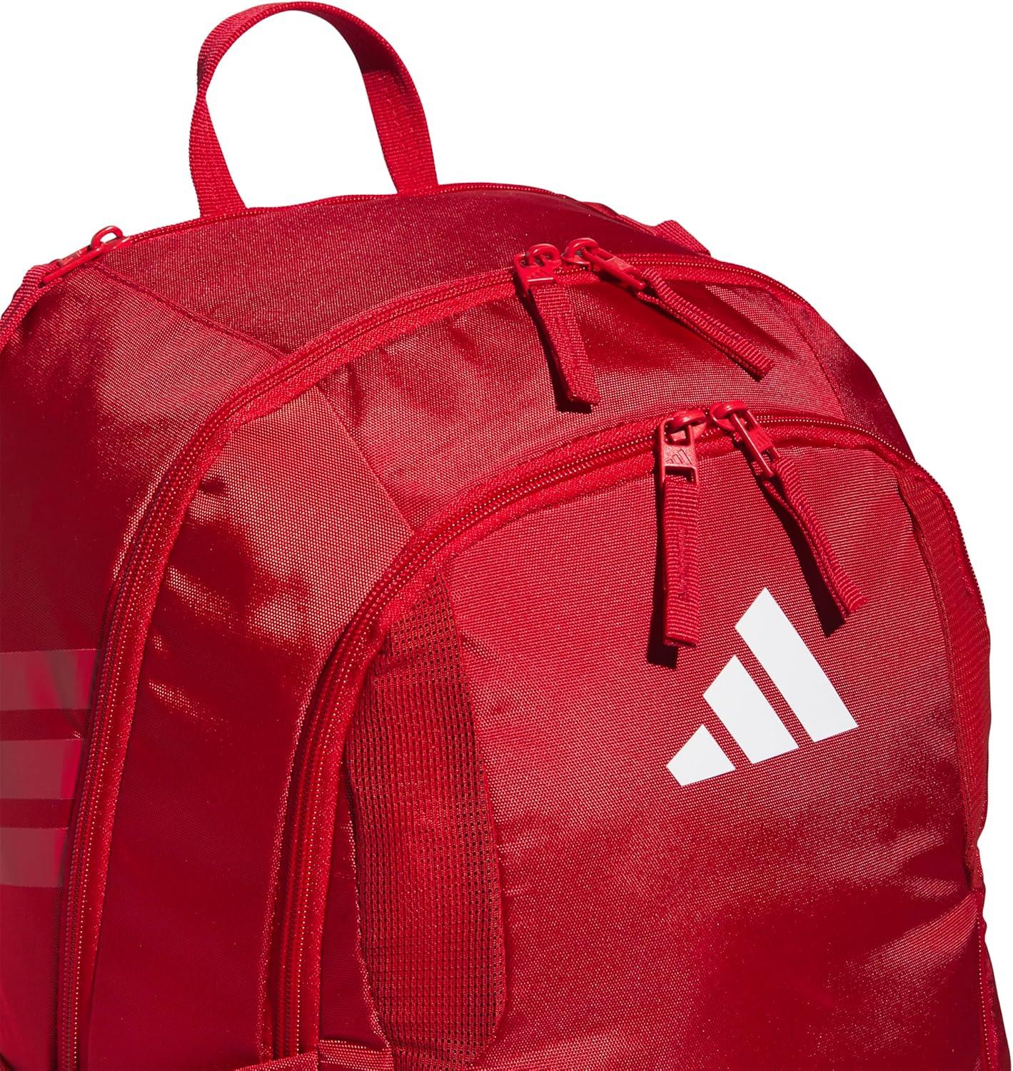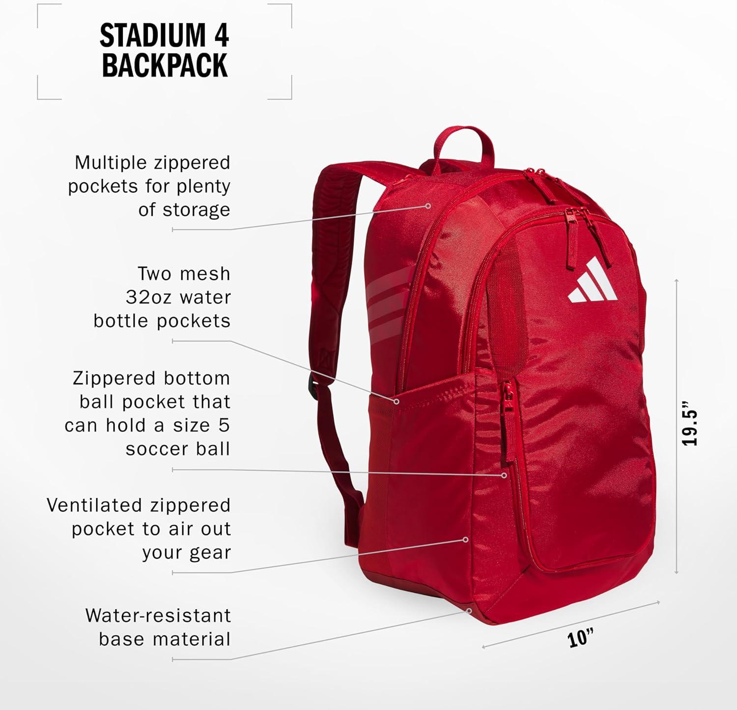 adidas Stadium Team Sports Backpack (36L) + 750 ml (28 oz) Refillable Plastic Sport Water Bottle, Navy Blue 2 + Blue/Silver Metallic, One Size(Power Red/White + Red/Black/Black)