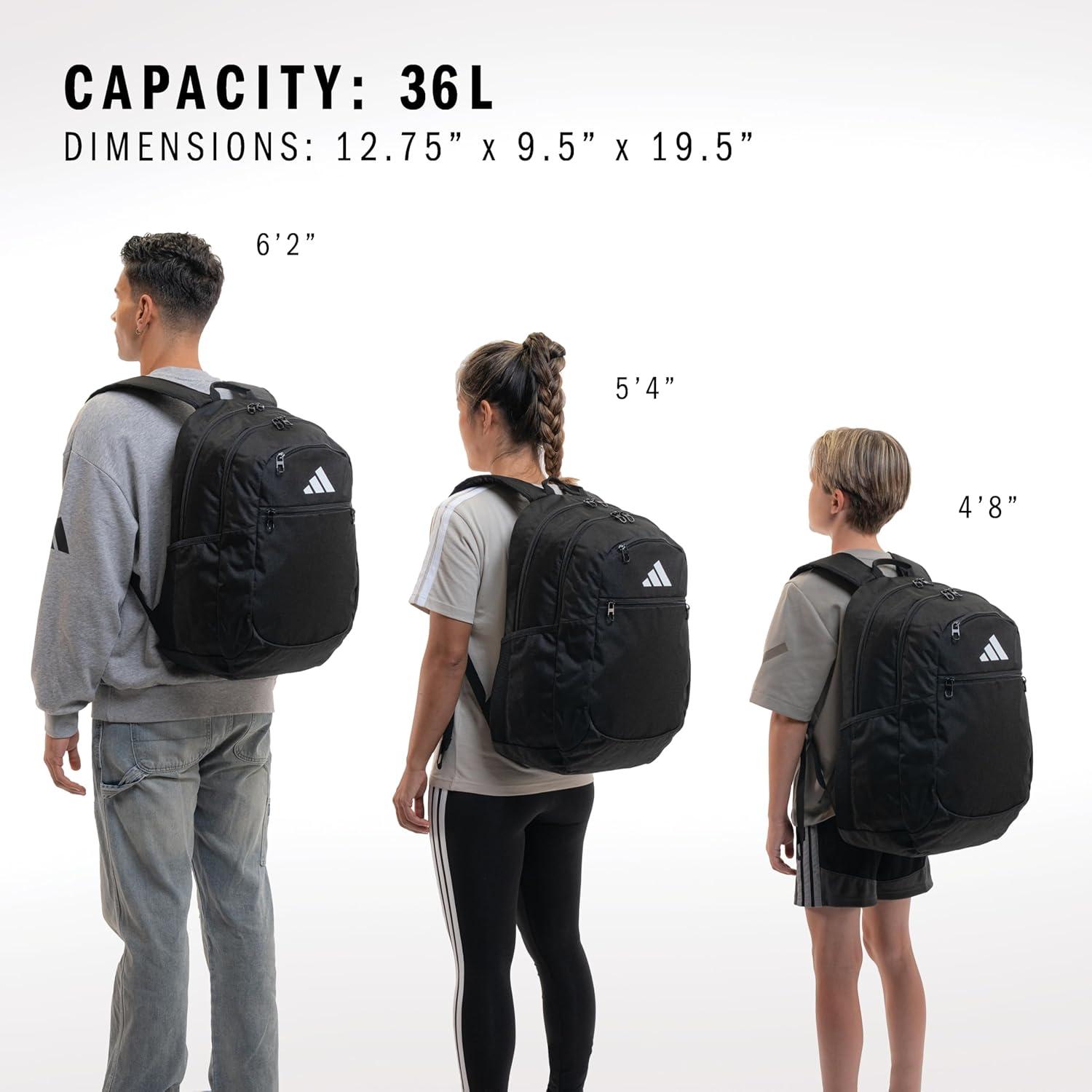 Perfect for school, sports and more, the Striker 3 Backpack from adidas is built to last and easy to carry. Multiple zip compartments make room for all your gear, including a dedicated sleeve that can hold up to a 15-inch laptop. Mesh slip pockets, padded straps and a top carry handle complete the design.