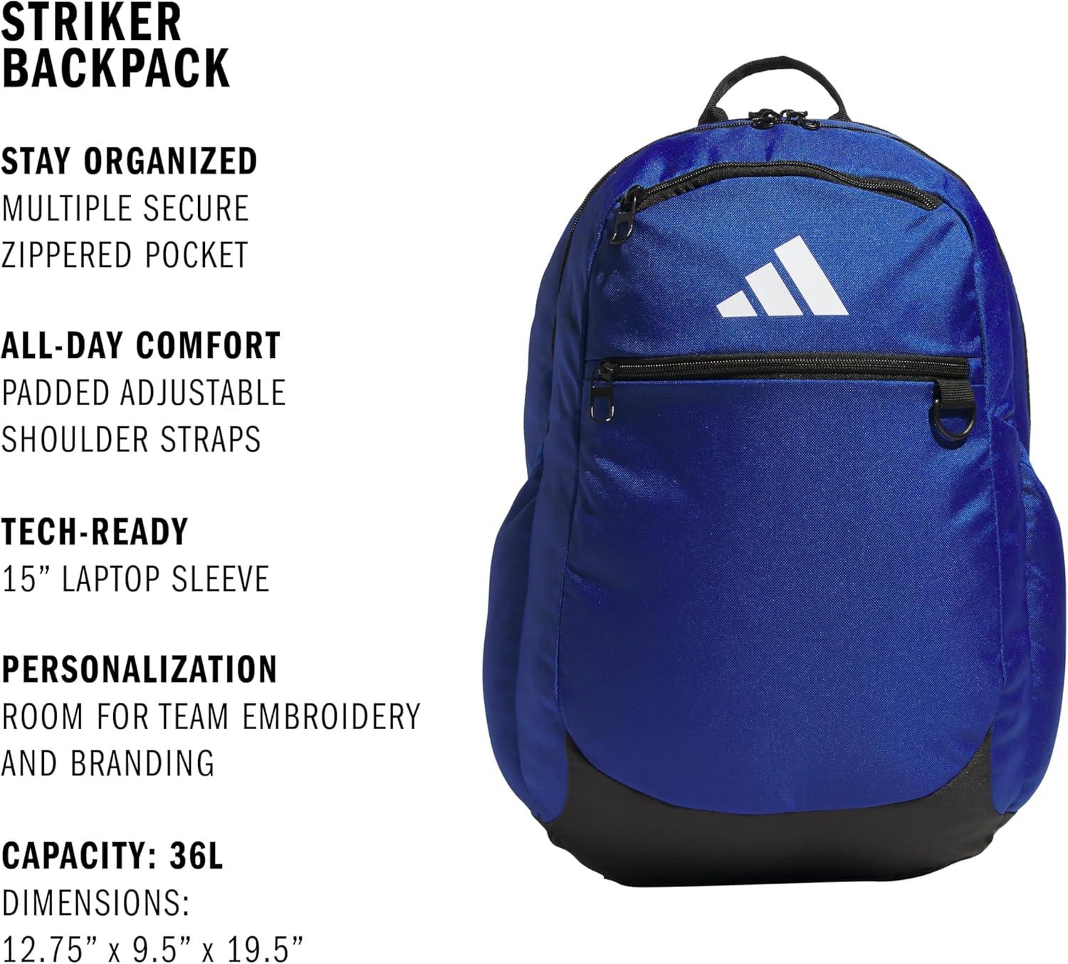 adidas Striker Team Sports Backpack for Soccer and More, Workout Bag for Men and Women, Black/3.0 (36L), One Size(Royal Blue/3.0 (36l))