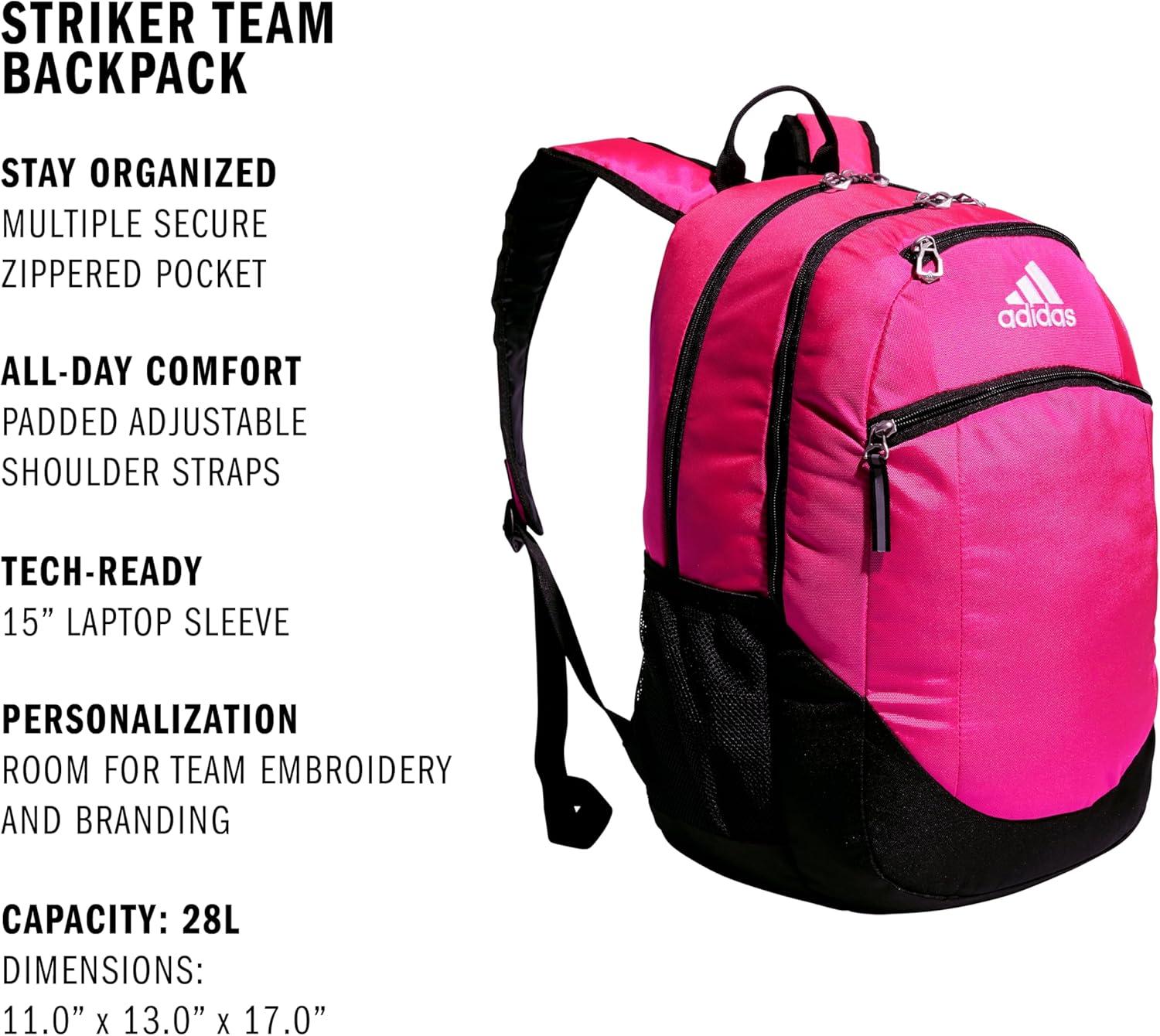 adidas Striker Team Sports Backpack for Soccer and More, Workout Bag for Men and Women, Black/3.0 (36L), One Size(Shock Pink/Black/White/2.0 (28l))
