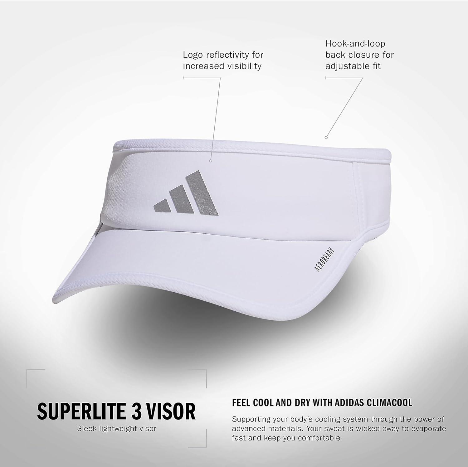 adidas Superlite, Sun Visor Hat for Women, Sport Performance, Outdoor Activities(White/Silver Metallic/3.0)