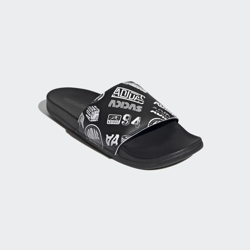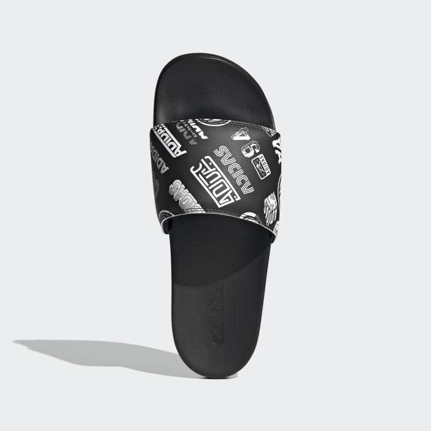 adidas Unisex Adilette Comfort Slide Sandal(Black/Black/White)
