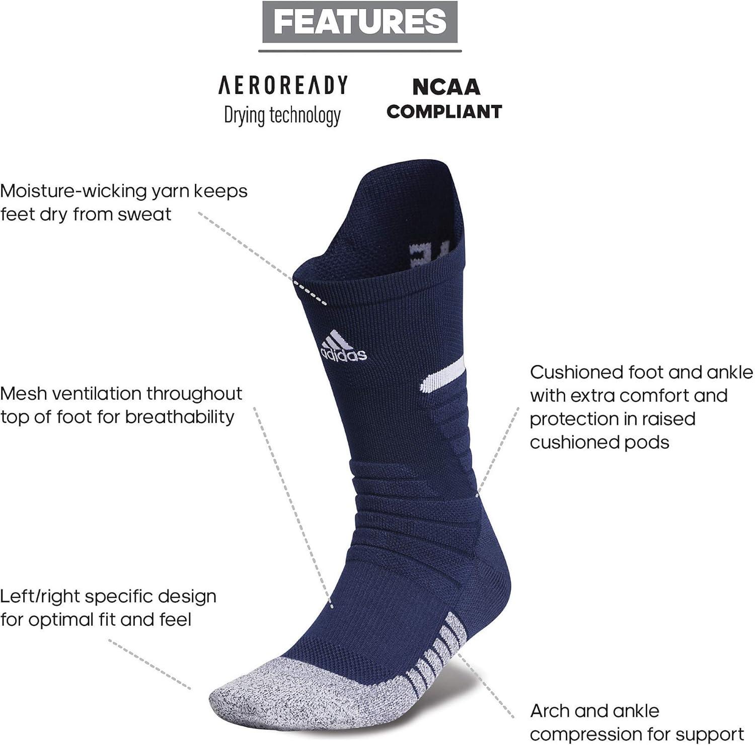 adidas Unisex Adizero Football Socks (1 Pair) Cushioned Crew for Men Women Kids Team Sports(Navy Blue/White)