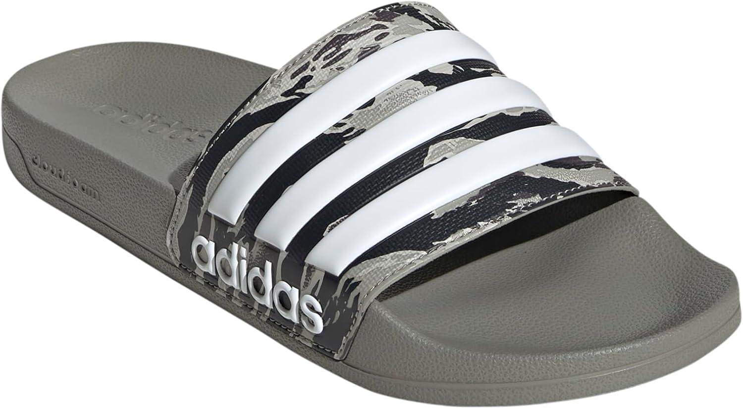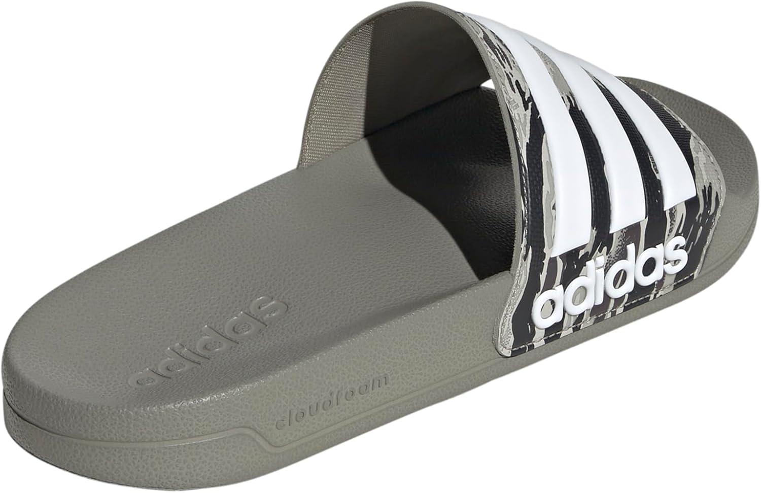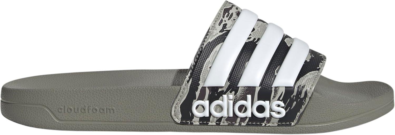 adidas Unisex Adult Adilette Shower Slip On Slides(Silver Pebble/Silver Pebble/White)