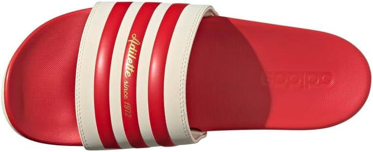 adidas Unisex-Adult Adilette Slides(Wonder White/Vivid Red/Gold Metallic)