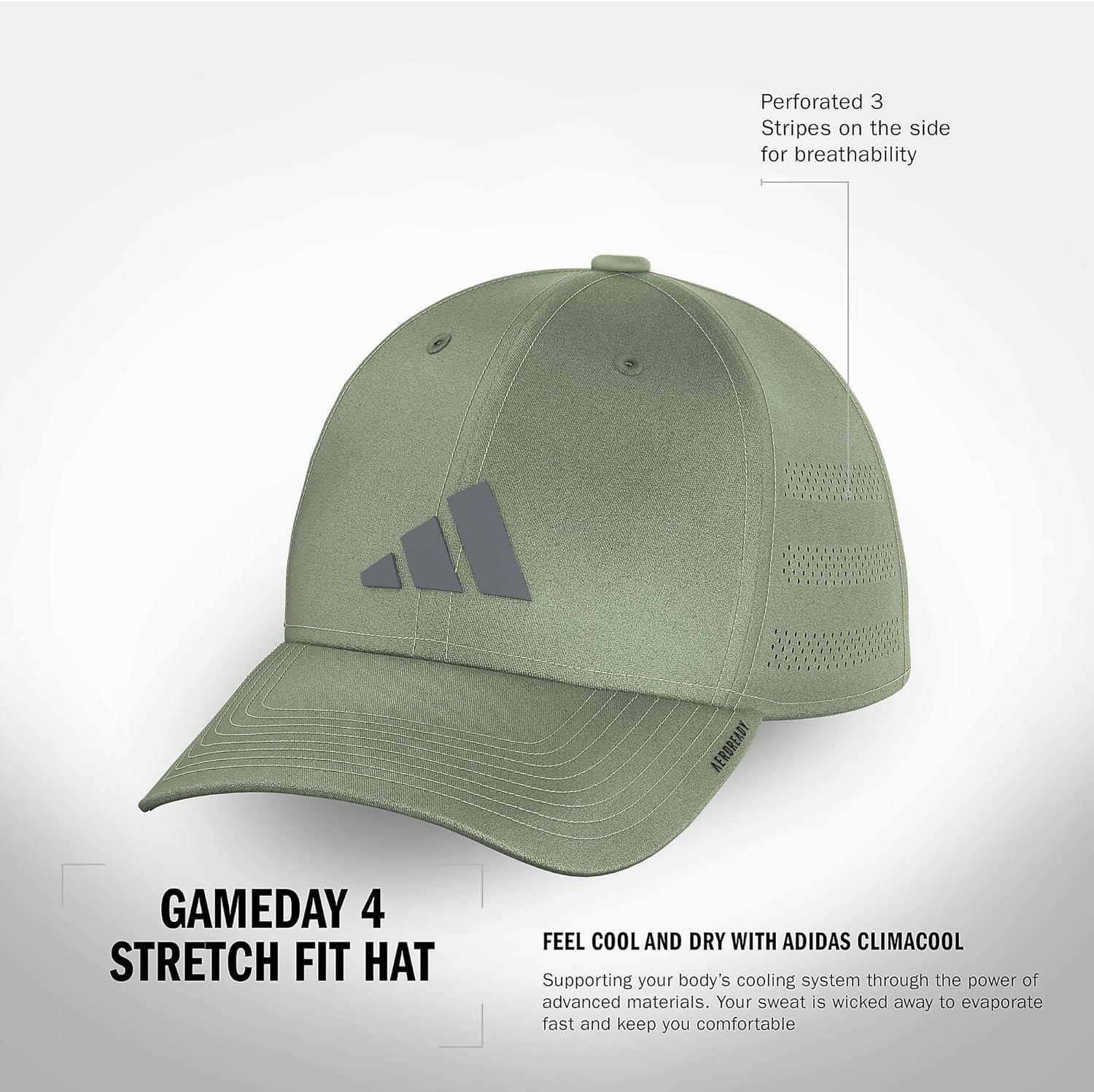 Adidas Unisex-Adult Gameday Hat – Flexible Stretch Sports Baseball Cap(Tent Green/Grey Five/4.0)