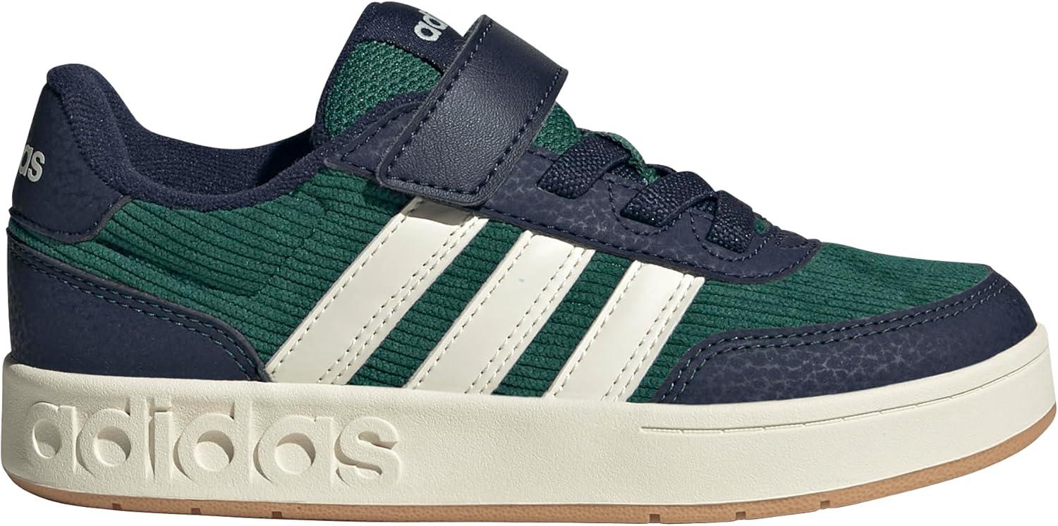 adidas Unisex-Child Breakbase Elastic Lace & Strap Sneaker(Collegiate Green/Off White/Collegiate Navy)
