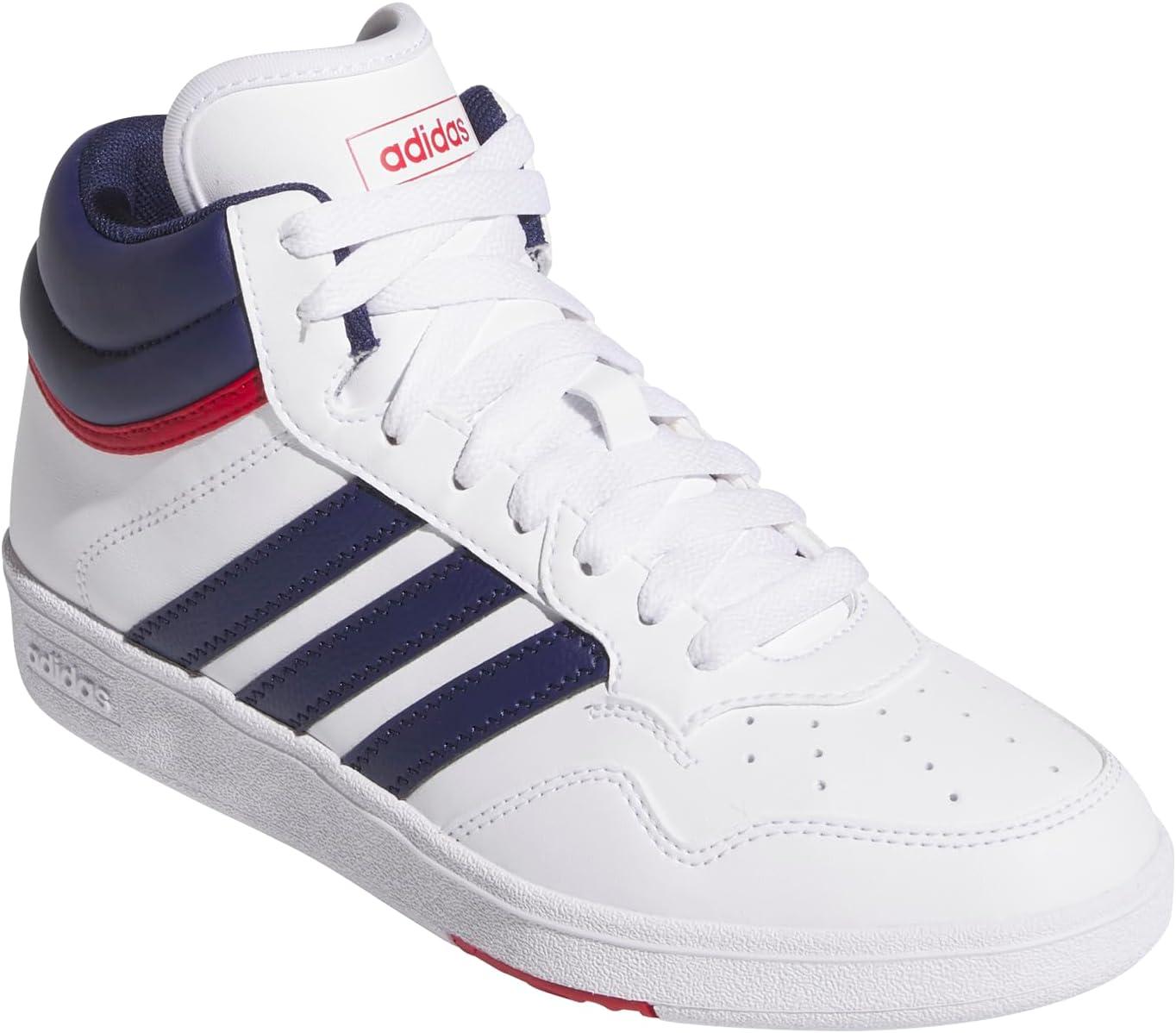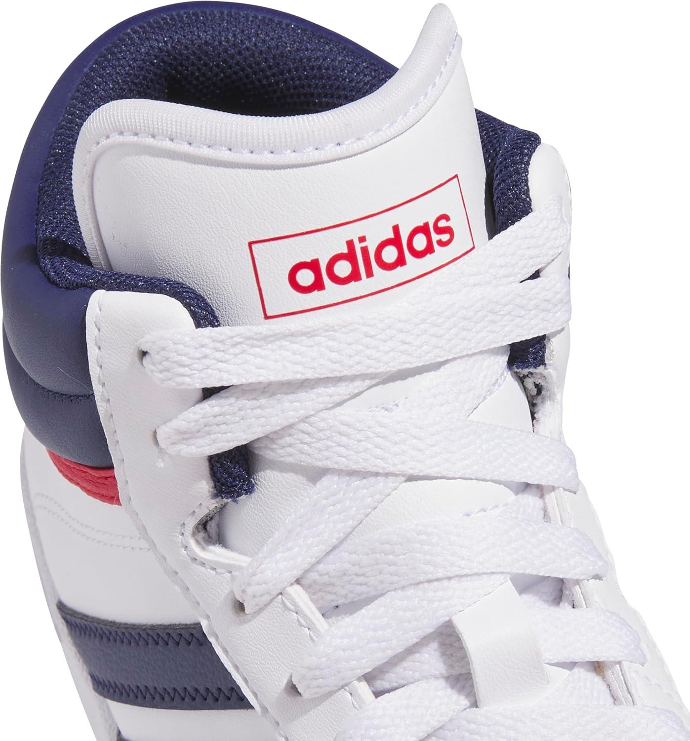 adidas Unisex-Child Hoops 4.0 Mid Top Basketball Sneaker(White/Dark Blue/Team Victory Red)