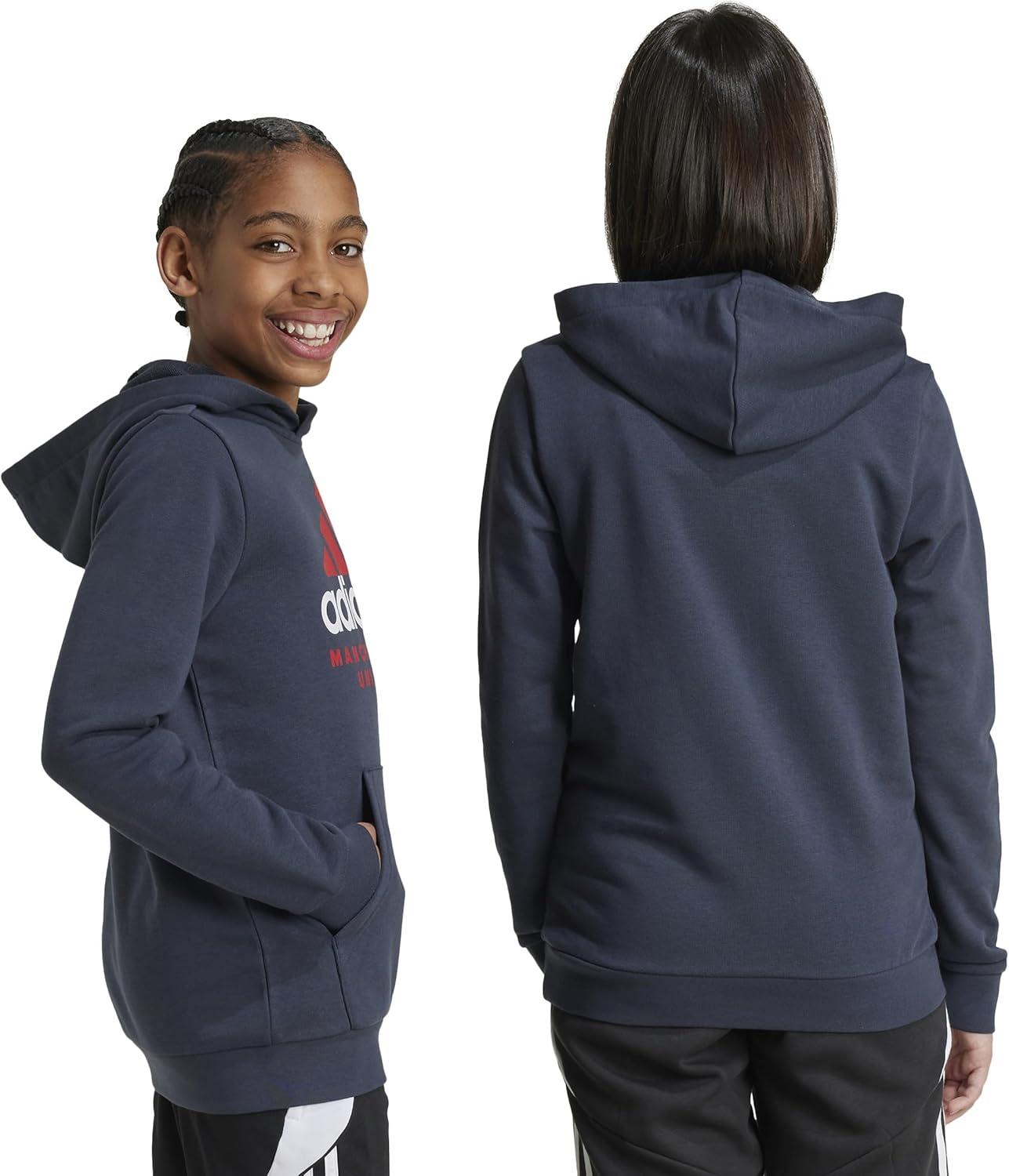 Rep your squad all day long in this juniors' Manchester United hooded sweatshirt from adidas. The team badge on the chest keeps the look official, while the ribbing on the cuffs and hem keep the fit snug. The hood and kangaroo pocket in front give you everything you need to dominate the colder weather.