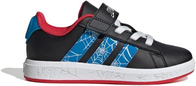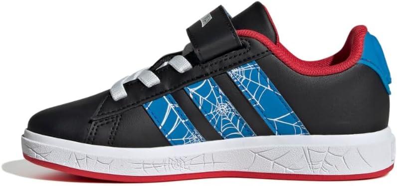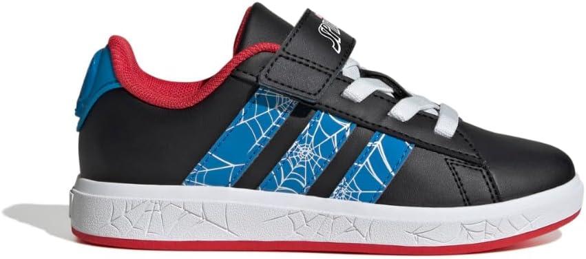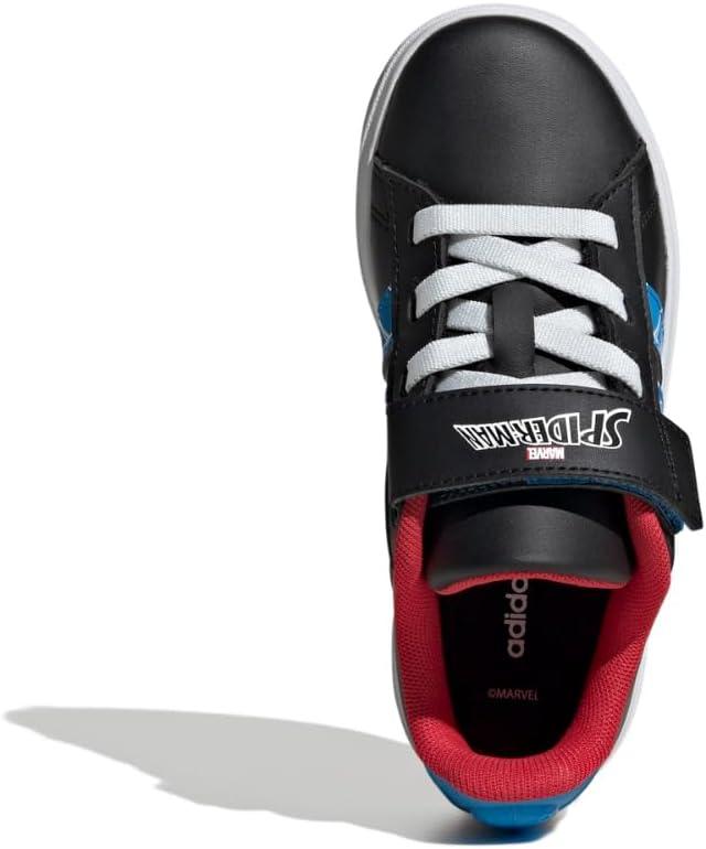 adidas Unisex-Child Marvel Grand Court Elastic Lace & Strap Sneaker(Spider-man/Black/Bright Blue/Pure Ruby)