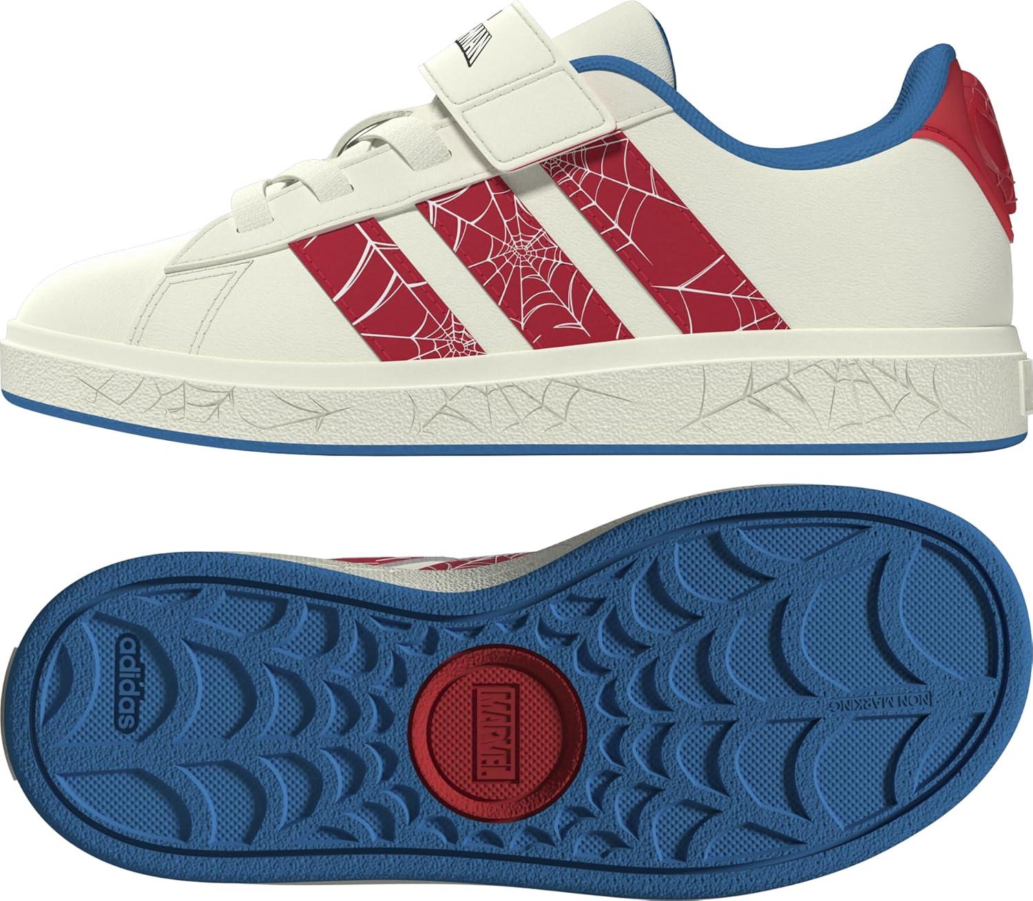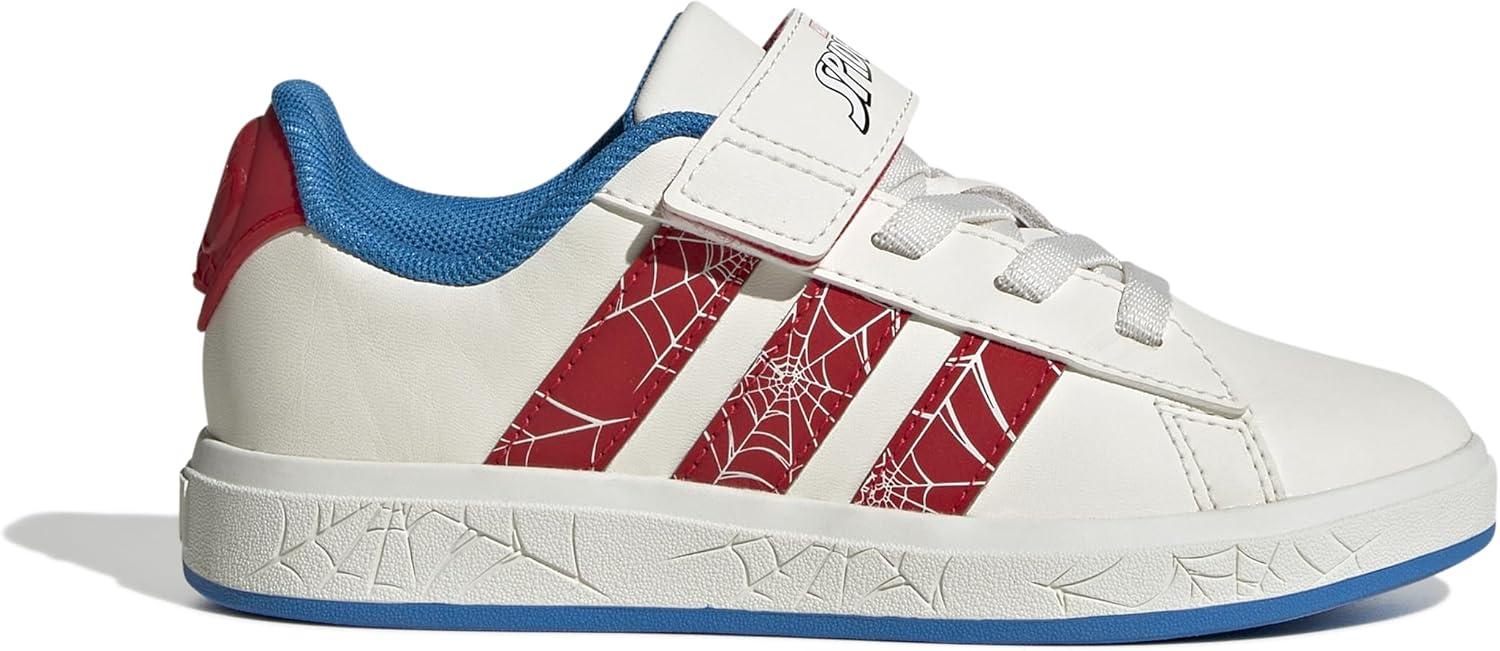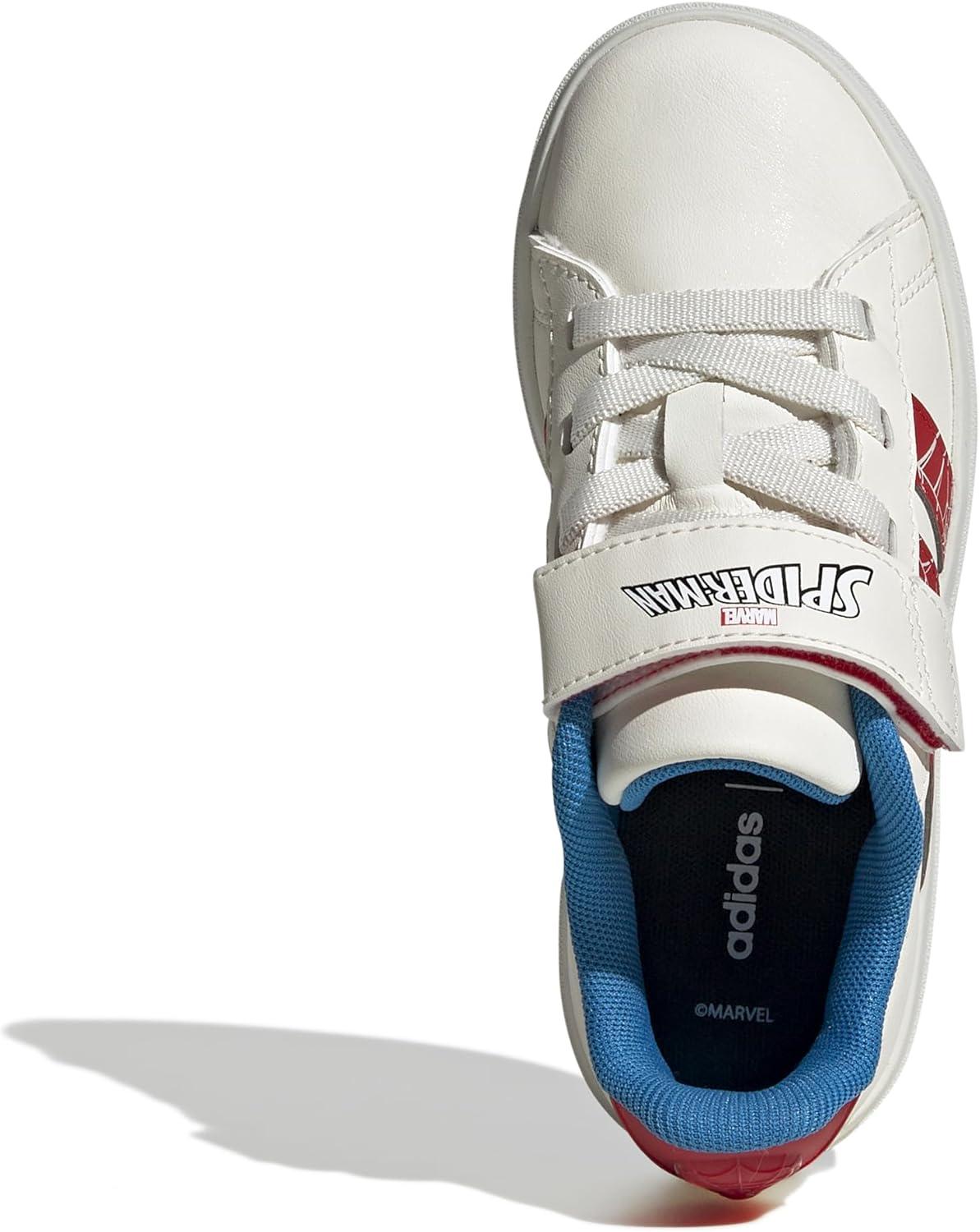 adidas Unisex-Child Marvel Grand Court Elastic Lace & Strap Sneaker(Spider-man/Cloud White/Pure Ruby/Bright Blue)