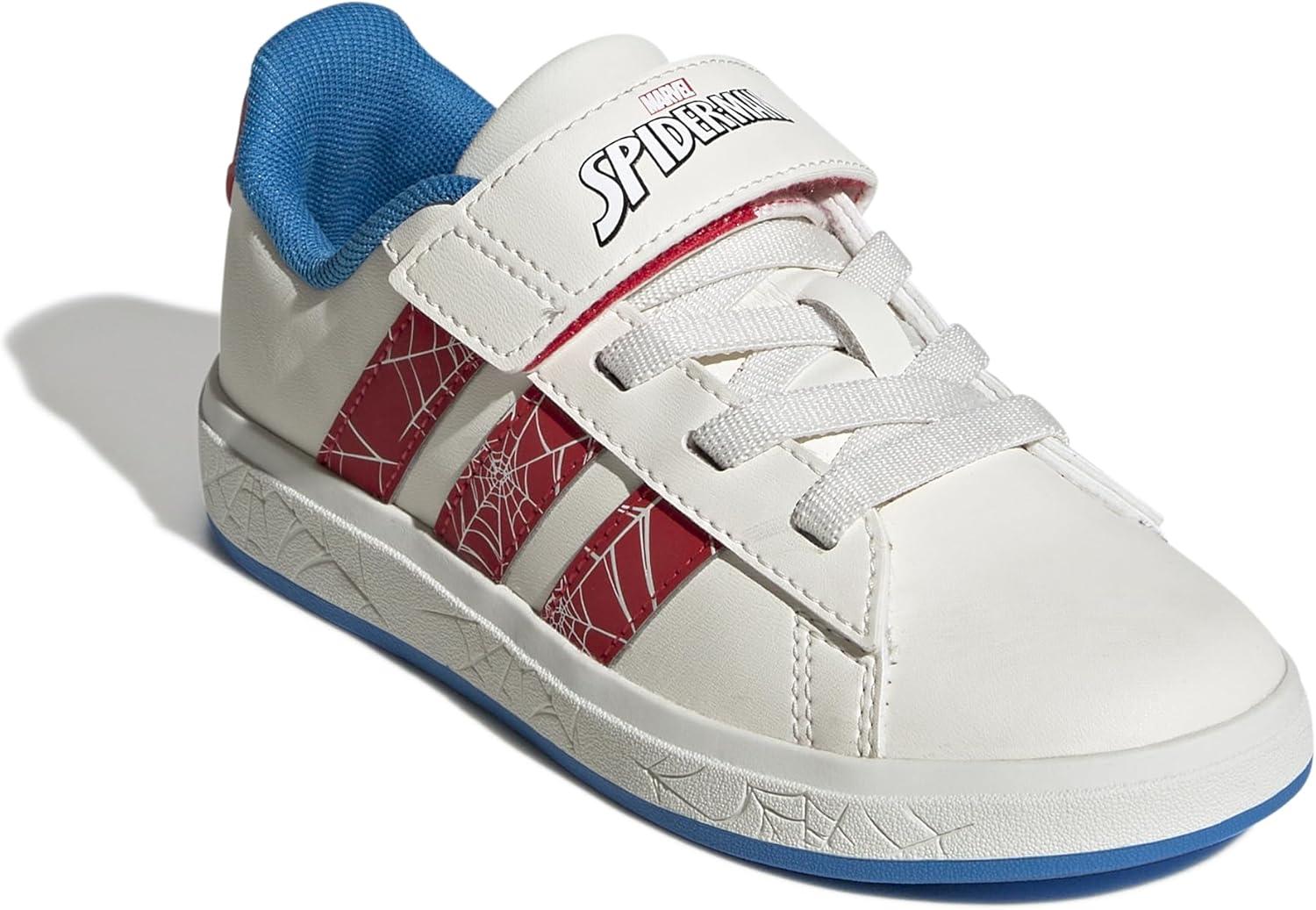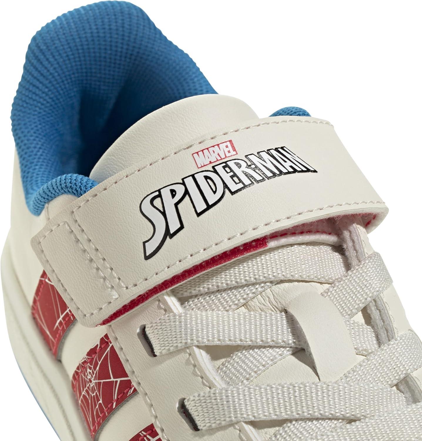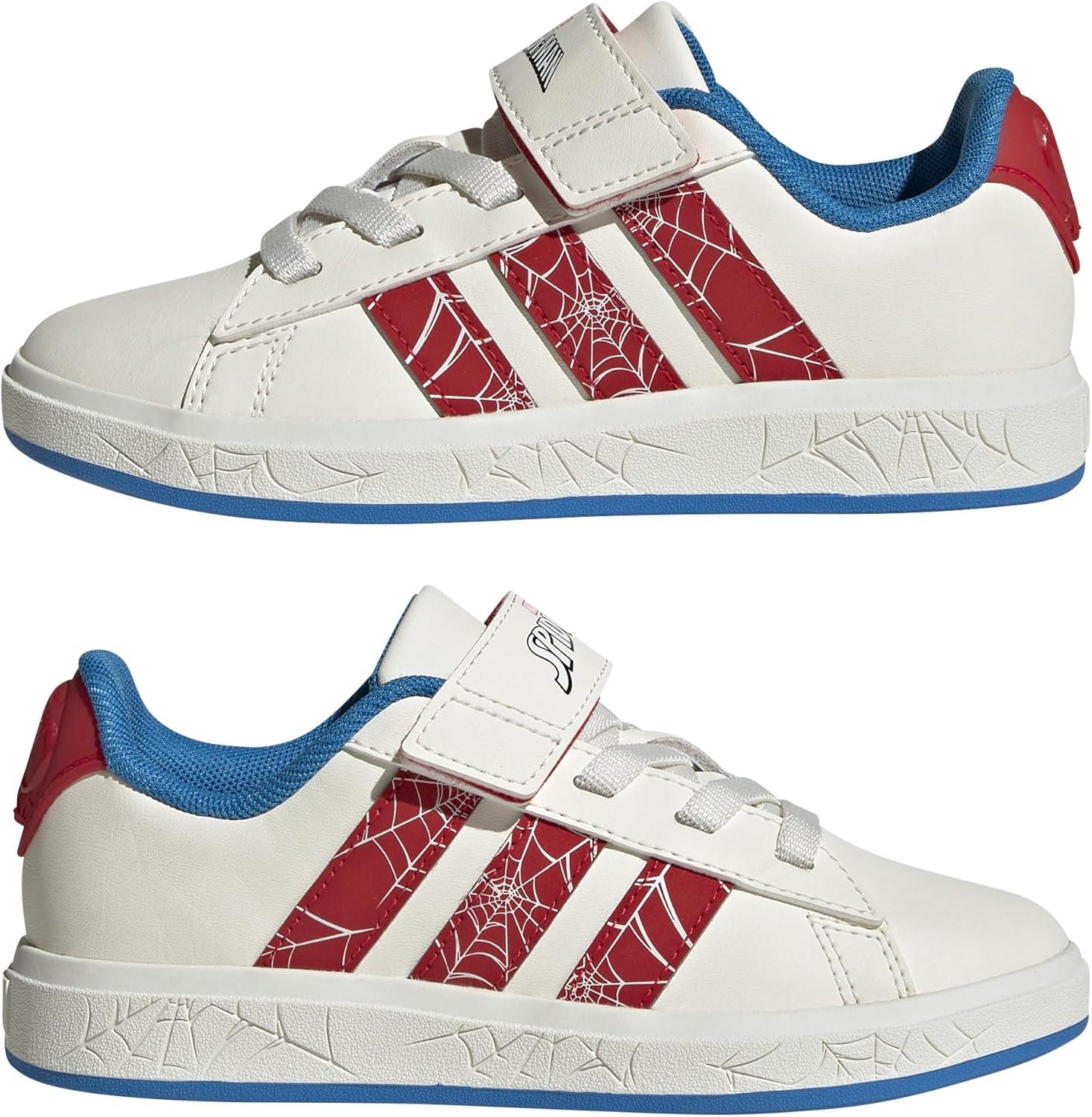 adidas Unisex-Child Marvel Grand Court Elastic Lace & Strap Sneaker(Spider-man/Cloud White/Pure Ruby/Bright Blue)