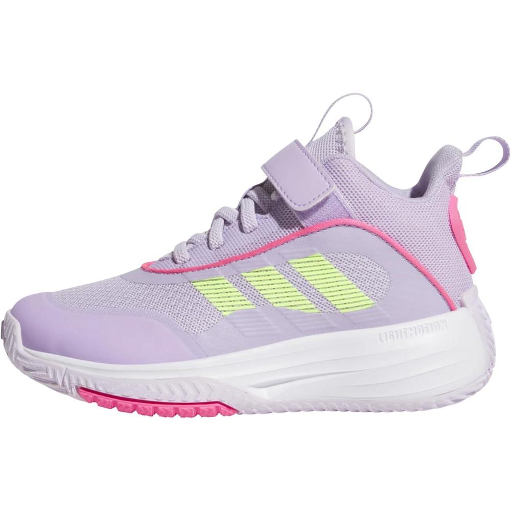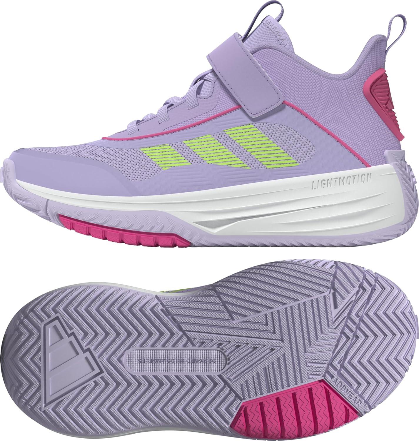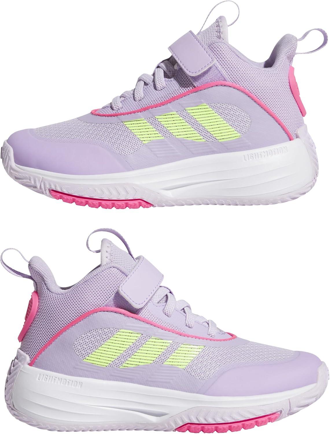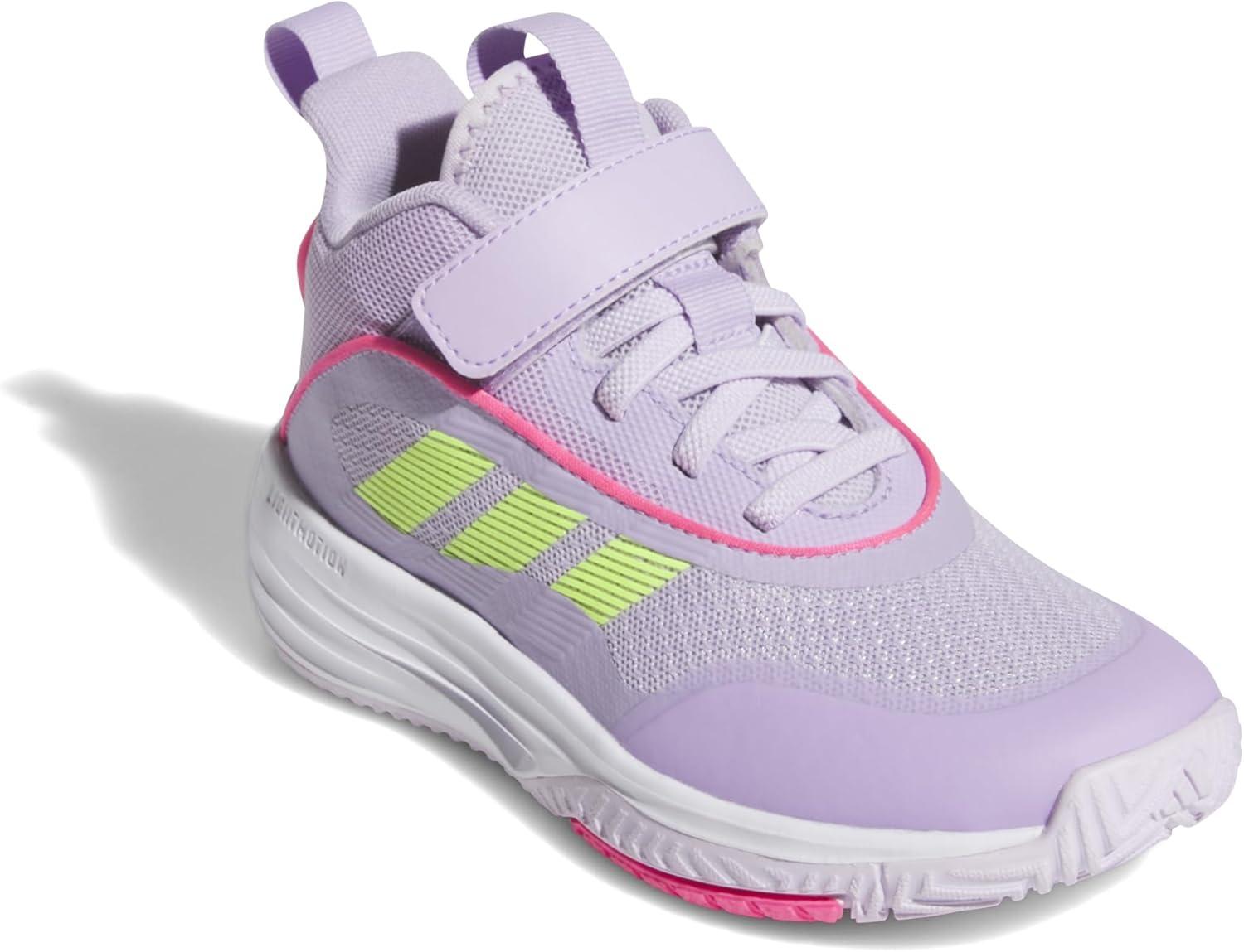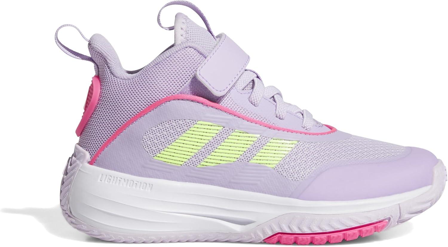 adidas Unisex-Child Own The Game 3.0 Mid Top Elastic Lace & Strap Basketball(Ice Lavender/Lucid Lemon/Powder Plum)