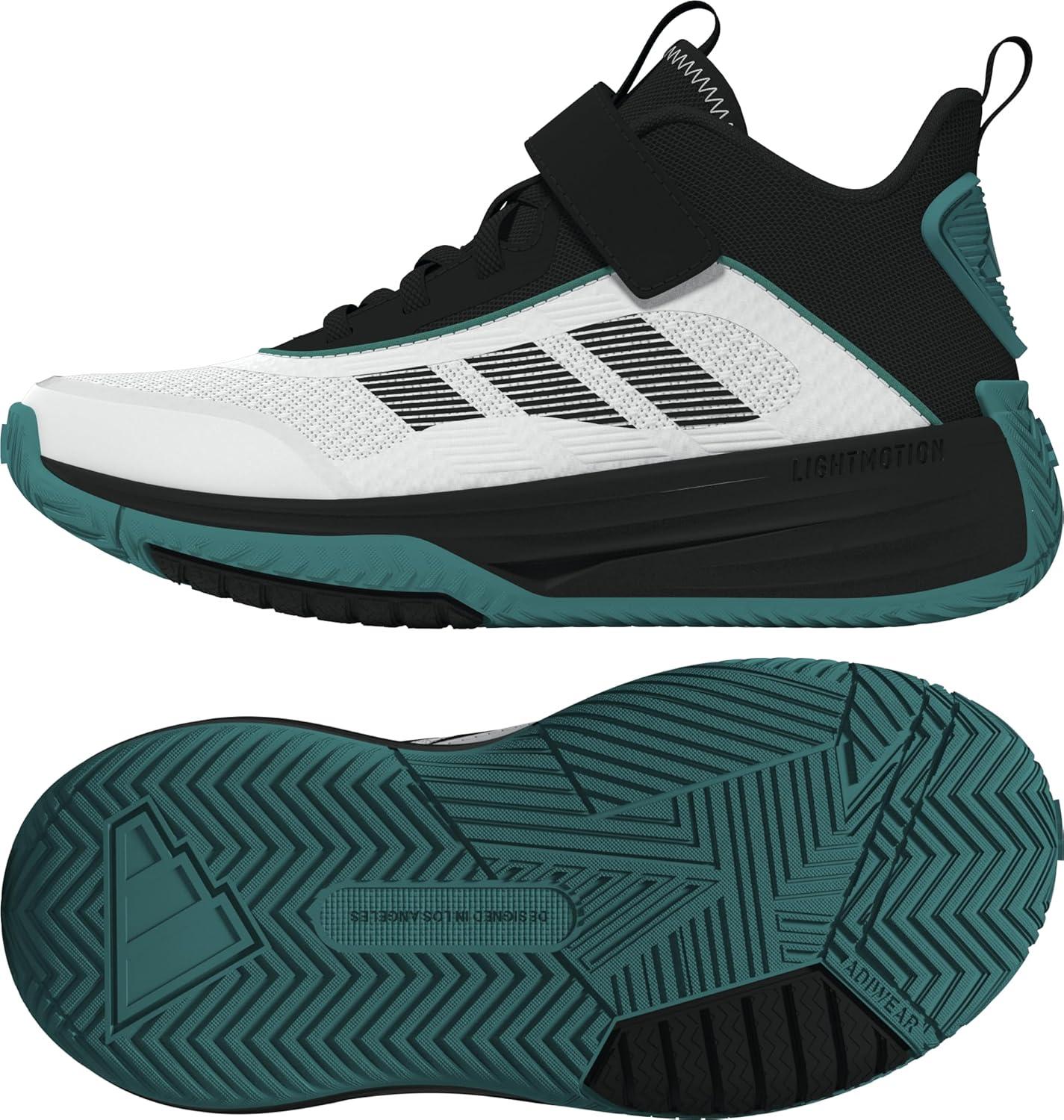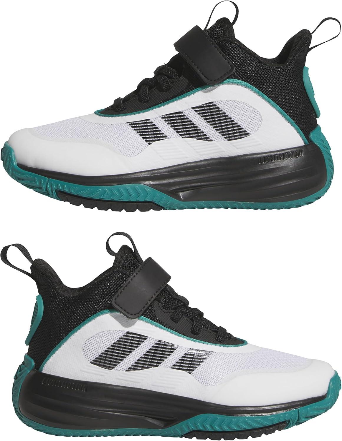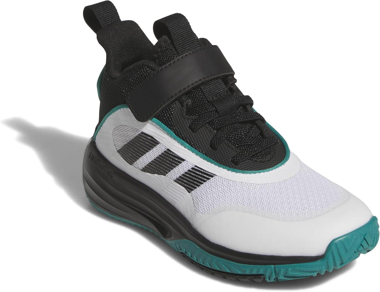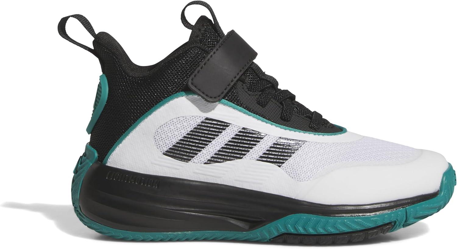 adidas Unisex-Child Own The Game 3.0 Mid Top Elastic Lace & Strap Basketball(White/Black/Pure Teal)