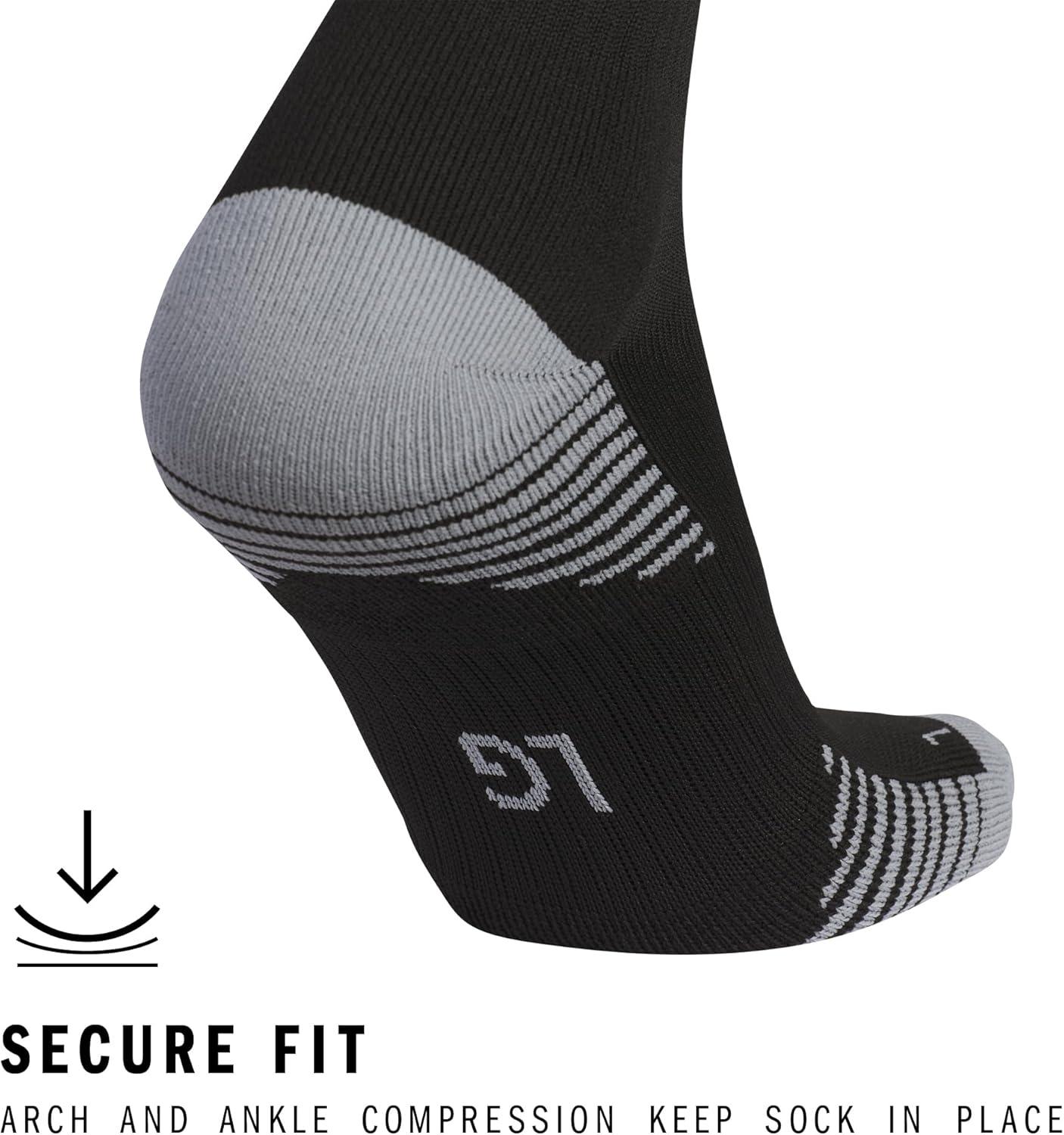 Get ready for the game with these adidas soccer socks, designed to elevate your performance on the field. These womens and mens socks offer moisture-wicking yarn to keep your feet dry from sweat. The classic 3-Stripe finish at the welt and center front Badge of Sport logo add a touch of style that's synonymous with adidas soccer. Whether you’re in the midst of a competitive match or a casual game, cushioning at the heel and toe provides the shock absorption you need. The adidas Copa Zone Cushion 5.0 socks feature compression for a secure fit and additional support. These womens and mens compression socks include arch and ankle support, providing stability. The airy mesh and lightweight construction offer a close fit and excellent ball touch, making them ideal running socks for men or women who seek both comfort and performance. These over-the-calf socks offer the classic fit and protection you'd expect. Perfect for both casual use and high-intensity activities, these socks are a versatile addition to any athlete’s wardrobe. Experience the superior quality and functionality of adidas soccer socks.