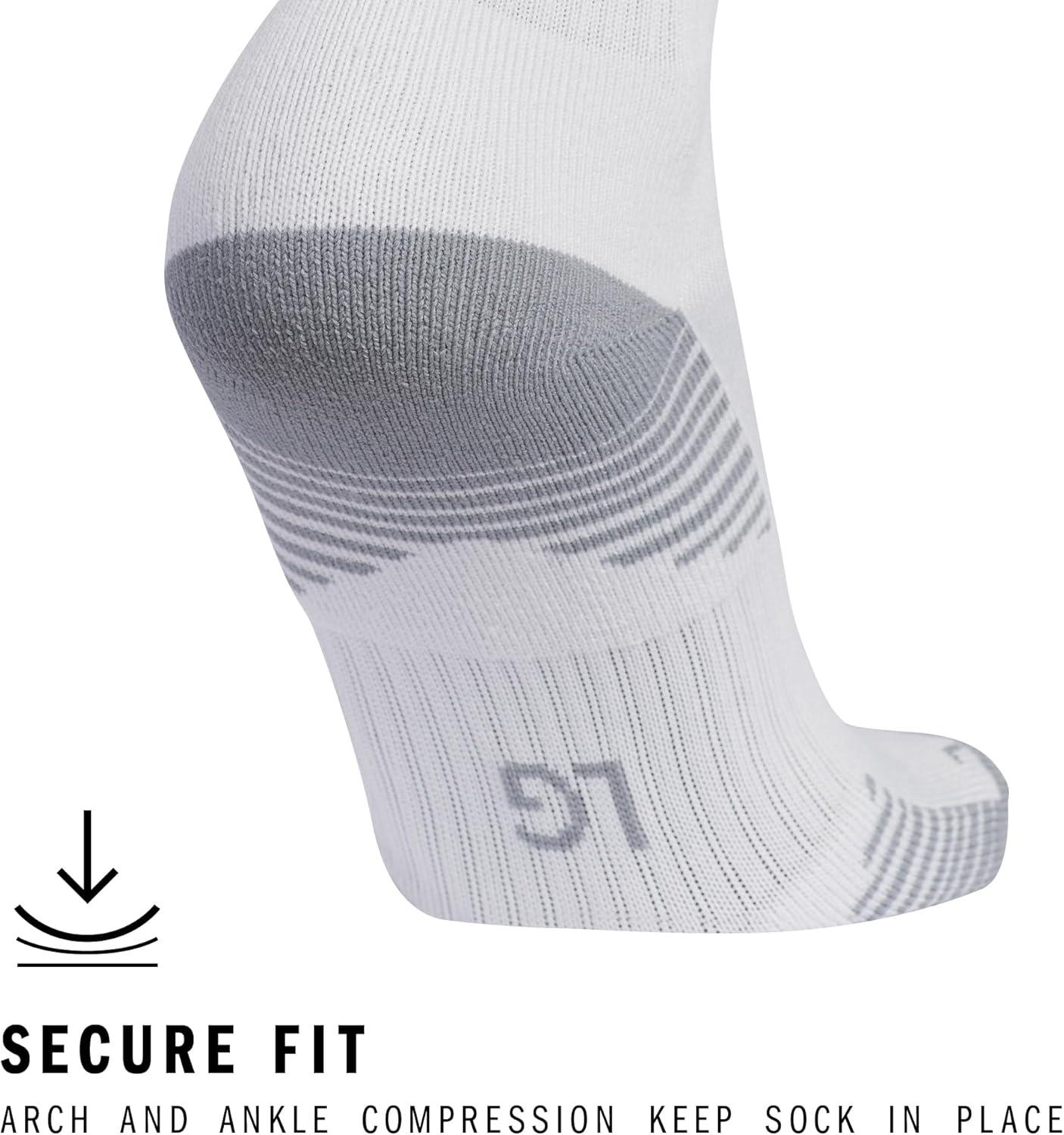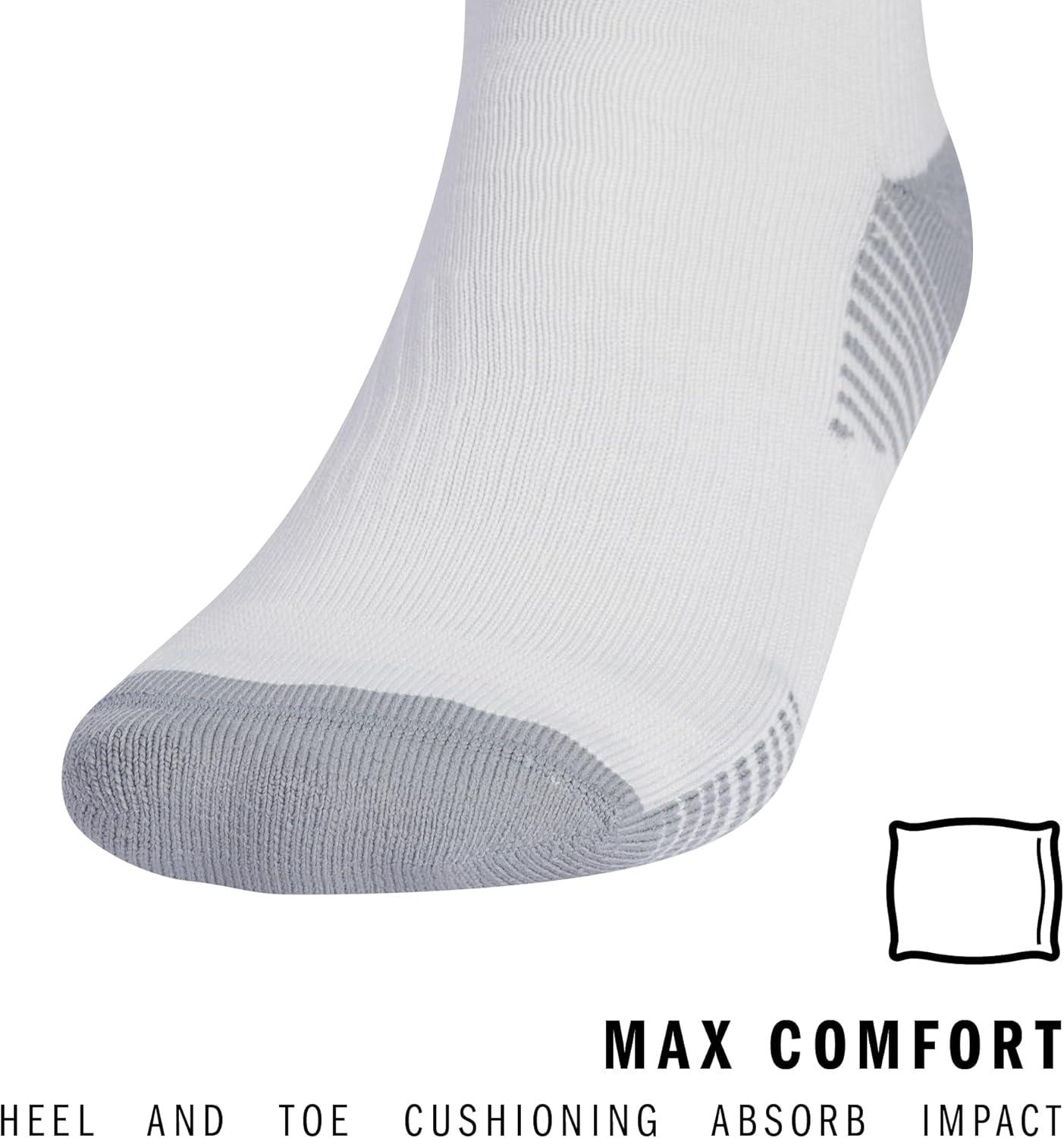 Get ready for the game with these adidas soccer socks, designed to elevate your performance on the field. These womens and mens socks offer moisture-wicking yarn to keep your feet dry from sweat. The classic 3-Stripe finish at the welt and center front Badge of Sport logo add a touch of style that's synonymous with adidas soccer. Whether you’re in the midst of a competitive match or a casual game, cushioning at the heel and toe provides the shock absorption you need. The adidas Copa Zone Cushion 5.0 socks feature compression for a secure fit and additional support. These womens and mens compression socks include arch and ankle support, providing stability. The airy mesh and lightweight construction offer a close fit and excellent ball touch, making them ideal running socks for men or women who seek both comfort and performance. These over-the-calf socks offer the classic fit and protection you'd expect. Perfect for both casual use and high-intensity activities, these socks are a versatile addition to any athlete’s wardrobe. Experience the superior quality and functionality of adidas soccer socks.